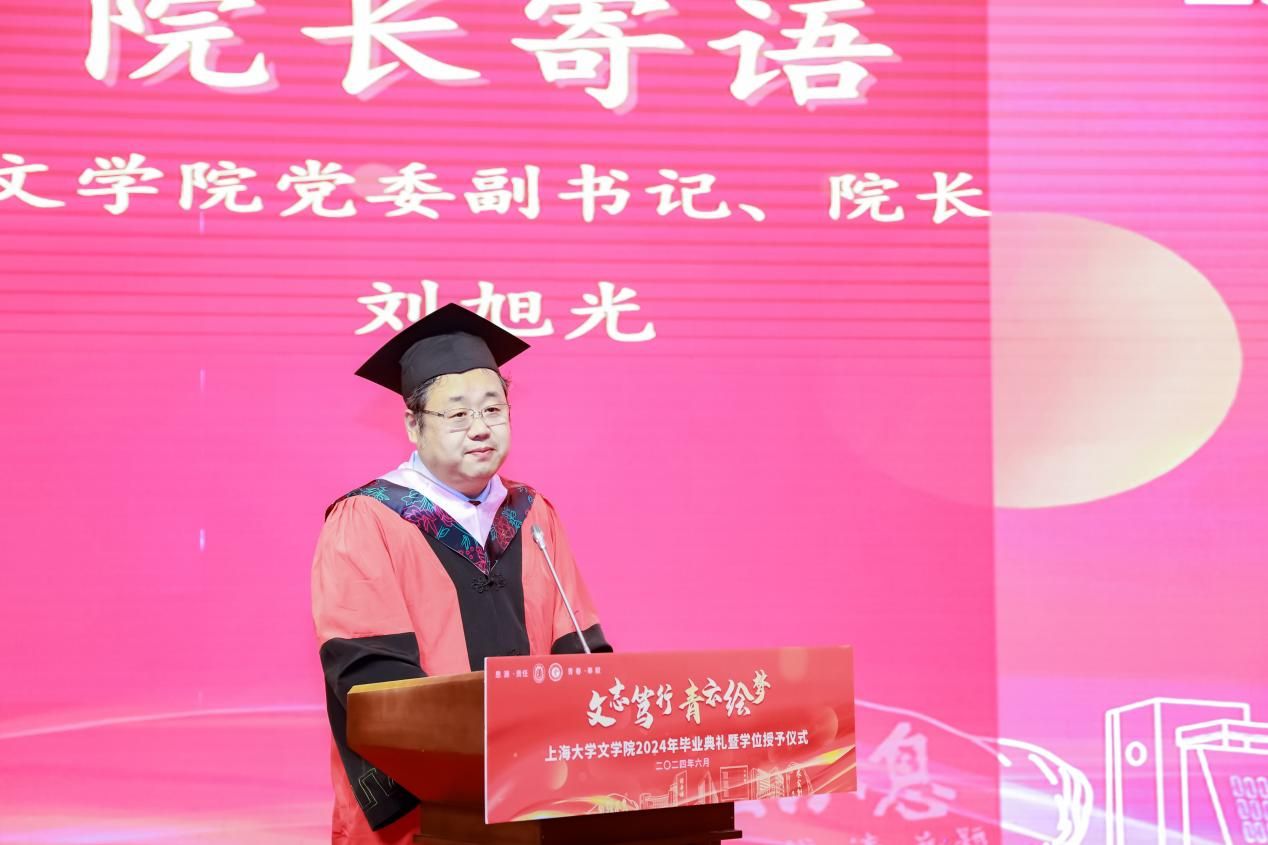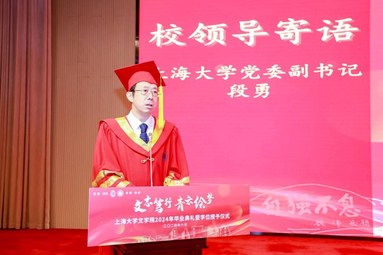 2024年6月23日上午,“文志笃行·青云绘梦”ac米兰官网中文网站文学院2024年毕业典礼暨学位授予仪式在ac米兰官网中文网站宝山校区图书馆报告厅顺利举行。