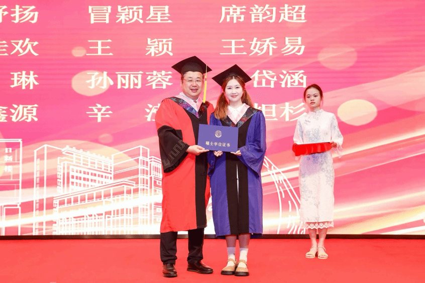 ac米兰官网中文网站党委副书记段勇,文学院党委书记陆甦颖,党委副书记、院长刘旭光,党委副书记、副院长丁佳蒙,副院长倪兰、宁镇疆、杨长云,中文系主任张永禄,历史系主任郭丹彤,文学院教师代表、学生辅导员、家长代表以及全体2024届毕业生共聚本次毕业典礼。典礼由文学院2024届中国史专业硕士研究生于景山、汉语言文学专业本科毕业生董芸洁主持。