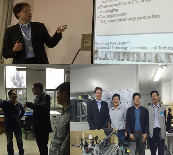 讲座结束后,马国宏教授,金钻明博士向Mathias Kläui教授介绍了理学院物理系超快光子学实验室近期的工作进展。Mathias Kläui教授在参观了超快光子学实验室后,对实验室的建设与发展提出了一些建设性的宝贵建议,双方讨论了合作开展研究和共同举办研讨会的意向