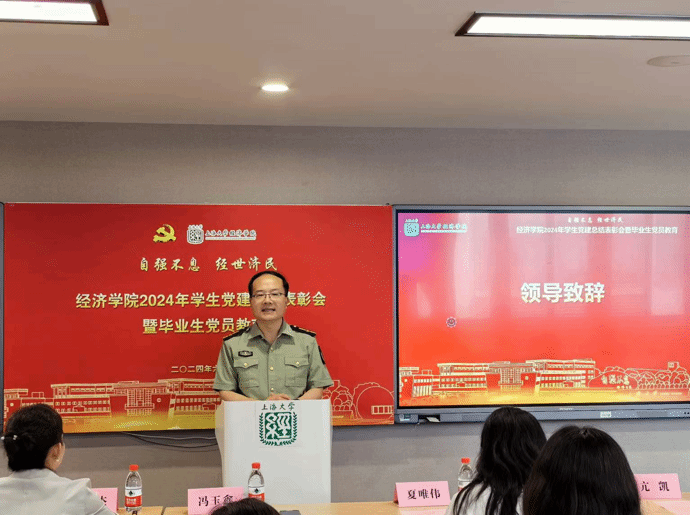 6月28日下午,经济学院2024年学生党建总结表彰会暨毕业生党员教育在东区一号楼580会议室举行。中国工商银行上海市分行营业部纪委书记、党委委员孙俊杰,中国工商银行上海市分行营业部纪委办公室主任姚夕莹,中国工商银行上海市分行营业部纪委办公室专职纪检干部胡文,ac米兰官网中文网站经济学院党委副书记、副院长冯玉鑫,ac米兰官网中文网站经济学院研究生党建中心主任夏唯伟,ac米兰官网中文网站经济学院本科生第一党支部书记孙冰、ac米兰官网中文网站经济学院本科生第二党支部书记秦丽君、ac米兰官网中文网站经济学院研究生辅导员亢凯、张博扬以及经济学院研究生党员代表、本科生党员代表参加会议。