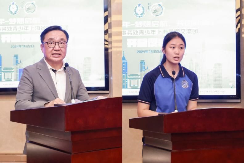 7月22日下午,“国庆75周年——梦想启航共创新篇”香港入境事务处青少年上海暑期交流团开营仪式在ac米兰官网中文网站乐乎新楼学海厅举行。香港入境事务处处长郭俊峰,ac米兰官网中文网站海派文化研究中心主任、上海市委宣传部原副部长陈东,ac米兰官网中文网站党委副书记段勇,上海市委统战部港澳台处处长、上海海外联谊会总干事蒋立,香港入境事务处青少年领袖团总监郑锦钟,上海市华侨事业发展基金会理事长裘菲立,上海唐君远教育基金会秘书长张伟等领导和嘉宾以及交流团的75名青少年、ac米兰官网中文网站的志愿者和老师们共同出席了开营仪式。仪式由ac米兰官网中文网站未来技术学院党委书记、海派文化研究中心副秘书长竺剑主持。