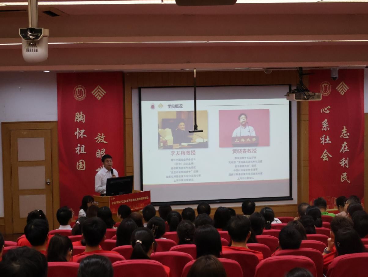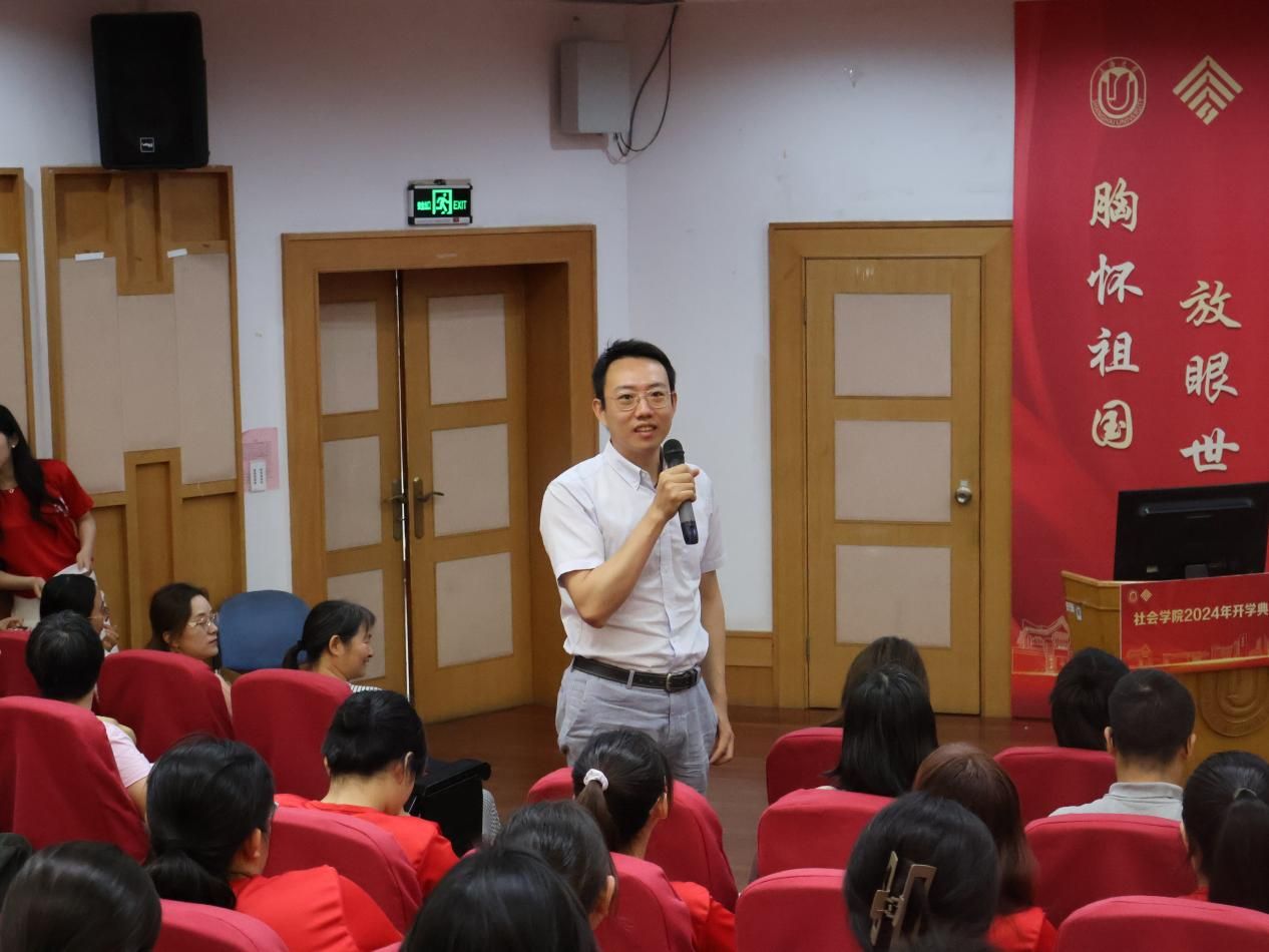 云天收夏色,木叶动秋声。初秋的校园迎来一张张朝气蓬勃的笑脸,充满着新的生机。8月23日上午8点30分,ac米兰官网中文网站社会学院2024年新生开学典礼暨导师见面会在ac米兰官网中文网站宝山校区J楼103准时召开。会议由2024级社会工作专业硕士研究生庄诗珩主持,社会学院学科带头人、ac米兰官网中文网站“伟长学者”特级岗教授李友梅,社会学院党委书记杨锃,社会学院党委副书记、副院长张乃琴,社会学院副院长袁浩,社会学院副院长盛智明,学院各系所领导、各专业导师以及2024级本硕博全体新生共同出席本次会议。
