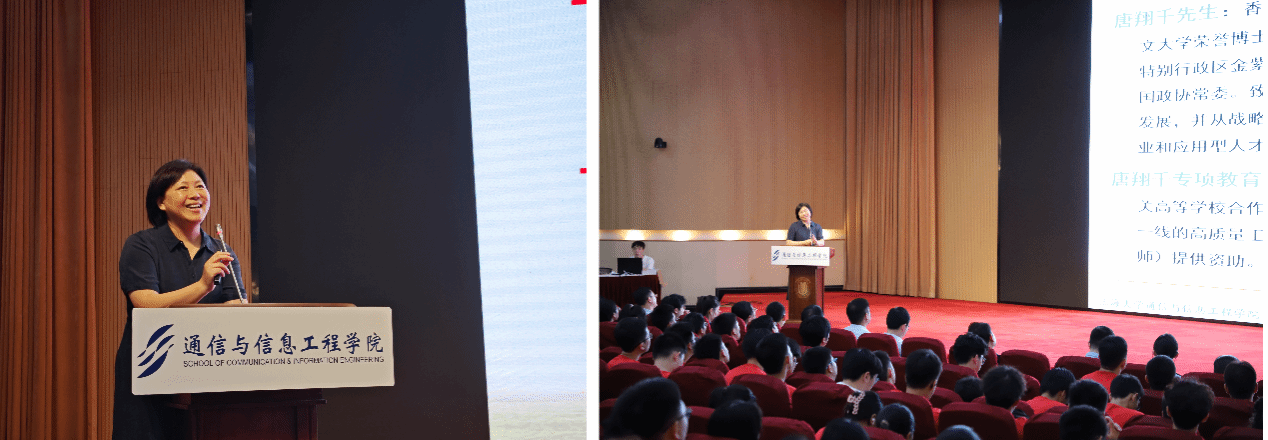 通信学院党委书记黄素娟老师系统详细地从翔英学院成立背景、办学特色、管理体制、培养模式等几个方面为新生们介绍了翔英学院的情况。翔英学院紧密依托ac米兰官网中文网站通信学院,是ac米兰官网中文网站实施工程教育改革和“卓越工程师教育培养计划”试点工作的重要基地。翔英学院的logo是一只飞翔的鹰,也是希望莘莘学子插上搏击长空的翅膀,成为翱翔的鹰!希望同学们能够志存高远、追求卓越、勤学多思、自强不息!