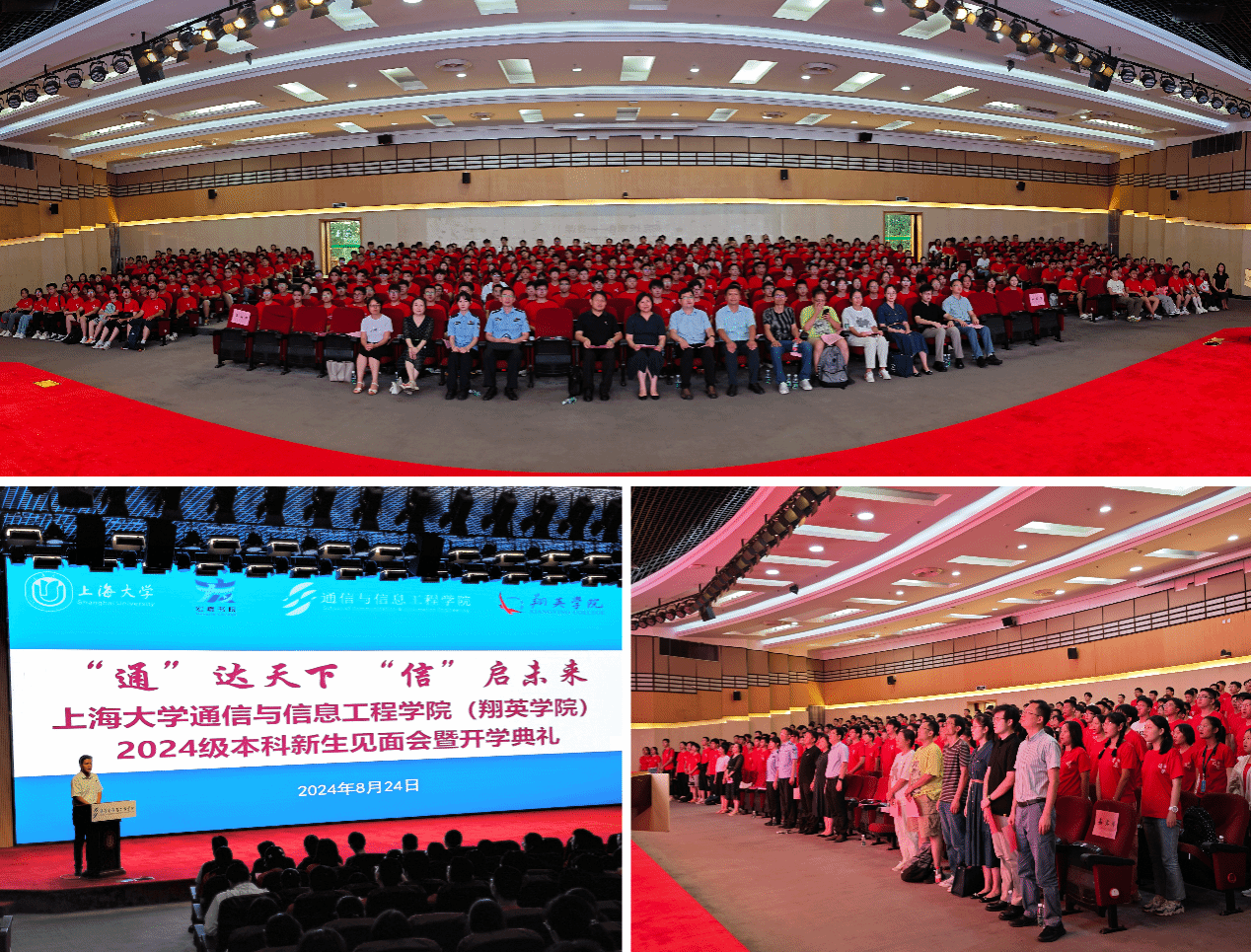 8月24日18:00,ac米兰官网中文网站通信学院、翔英学院2024级本科新生见面会暨开学典礼在图书馆报告厅成功举行。通信学院党委书记黄素娟老师,院长、党委副书记庞拂飞老师,副院长金彦亮老师,新生班主任、辅导员与447位本科新生共同参会。见面会由院党委副书记、副院长陈涛老师主持。