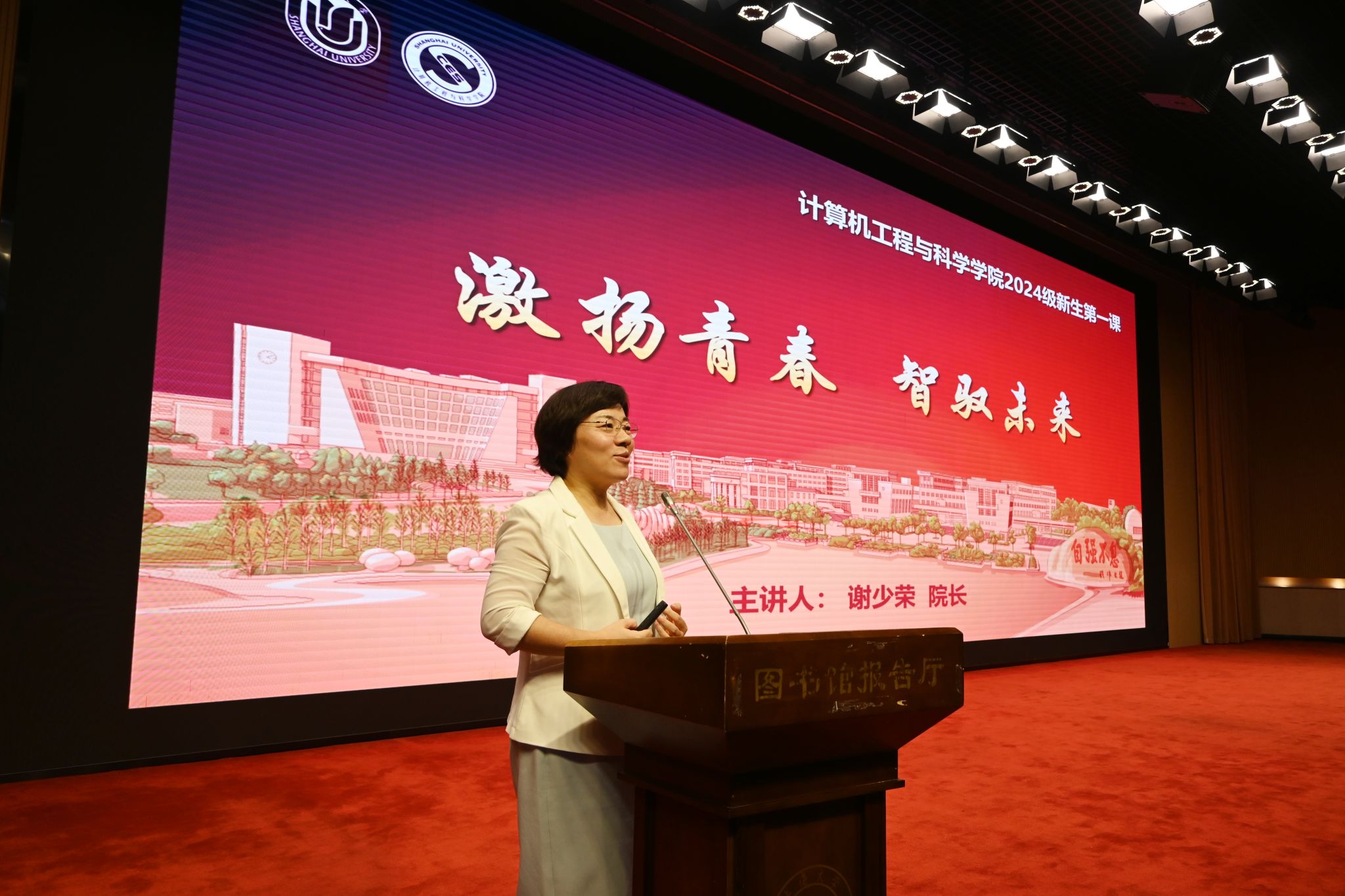 8月23日上午,计算机工程与科学学院在图书馆报告厅隆重举行“计”序新程,“智”绘未来——2024级本科新生开学典礼暨院长开学第一课。学院党委书记朱宏涛,党委副书记、院长谢少荣,党委副书记、副院长赖练,副院长骆祥峰、李晓强、邹国兵、辛立明,计算机科学与技术系党支部书记、学院工会主席武频,综合党支部书记、本科生教学秘书陈小鸥,基础教学中心主任高洪皓,智能科学与技术系党支部副书记、学院工会副主席张惠然、24级新生辅导员李兆燕、艾敏以及新生导生、2024级计算机学院直招新生和计算机学院代管理工Ⅲ类新生共同出席本次典礼,艾敏主持。