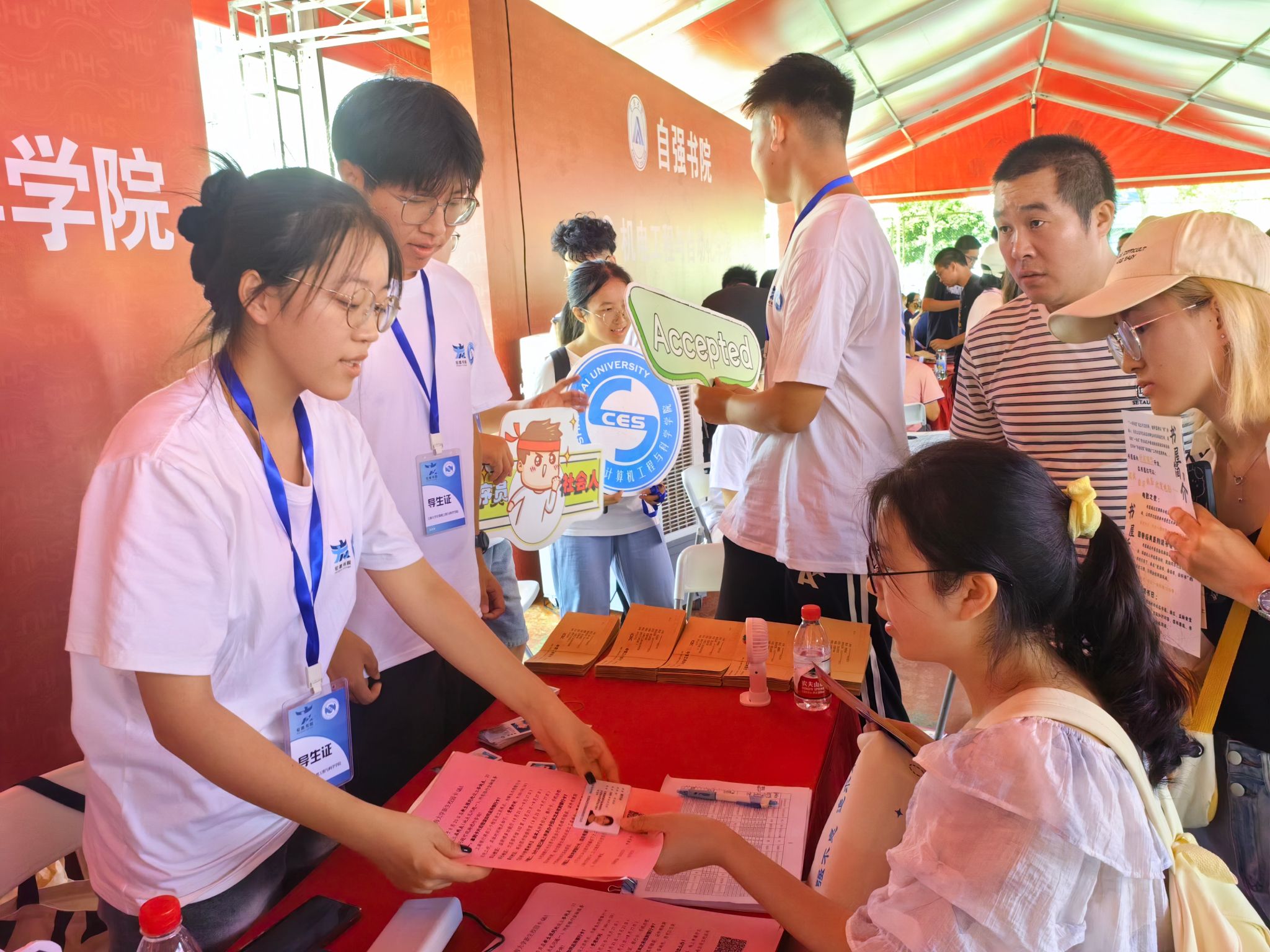 8月19日、20日,24级新同学陆续来到上大校园,在导生的引导下完成了报到,领取校园卡、银行卡及新生礼包等,并前往宿舍区域办理入住。校党委书记成旦红一行、校长刘昌胜一行先后走访了宏嘉书院计算机工程与科学学院本科新生报到处和南区学生宿舍等,关心报到情况,与计算机学院新生亲切交流,对新生的到来表示欢迎,向新生们传递了学校的温暖关怀。