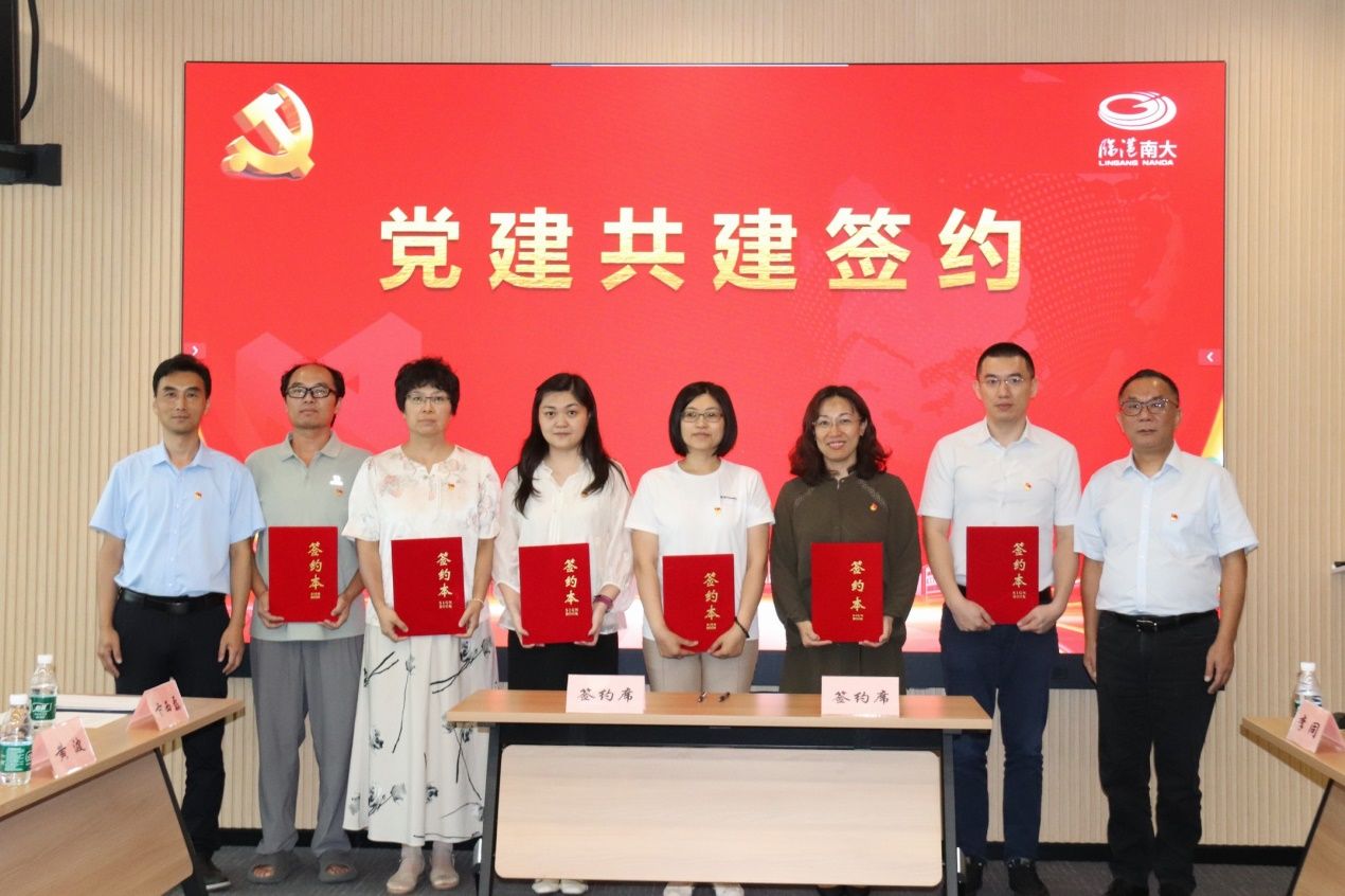 党员一行先行来到南大数智中心20楼,俯瞰整个南大智慧城的开发建设情况,全面了解了区域规划、交通区位、产业导向及科创生态。随后,临港南大一支部分别与材料学院无机宝石教工党支部、材料物理教工党支部,南大二支部分别与材料学院电子信息材料教工党支部、材料研究所党支部进行党建共建签约。通过党支部共建联建实现互相促进、取长补短,为校企联合、科技转化等架起沟通桥梁,促进党的建设和中心工作深度融合。