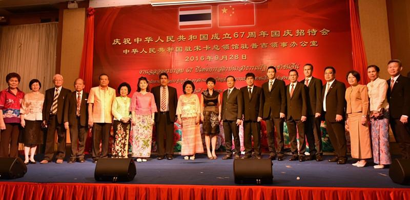 9月28日,中华人民共和国驻宋卡总领馆驻普吉领事办公室举行庆祝中华人民共和国成立67周年国庆招待会,宋卡王子大学普吉孔子学院大力协办并参演。来自普吉、甲米、攀牙三地的华人华侨代表、各国领事单位、当地政商界等约500余名嘉宾欢聚一堂,共同庆祝。