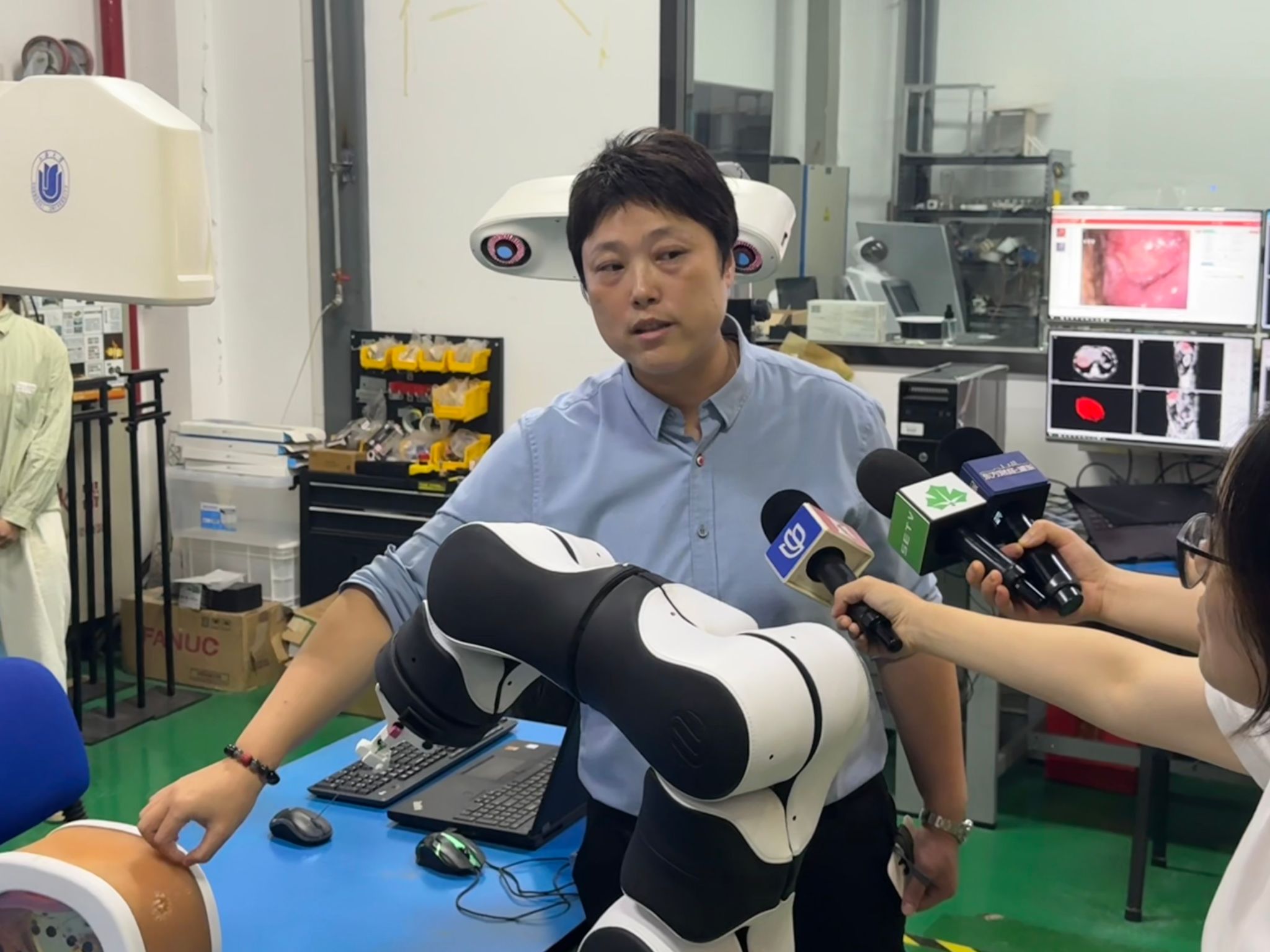 随后,媒体朋友们走入实验室科研一线,深入了解学校科研团队研发成果与创新实践,与科研团队老师近距离交流,了解科研团队科技创新与研发进展。此次工博会参展项目探营活动,重点参观了生命科学学院廖新化老师的”基于AAV基因疗法的新应用“,环境与化学工程学院蒋永老师的”高比能量长寿命固态锂硫电池技术“,机电工程与自动化学院岳涛老师的”血管化器官芯片技术“及李静老师的“光学导航经皮穿刺手术机器人系统“等项目。
