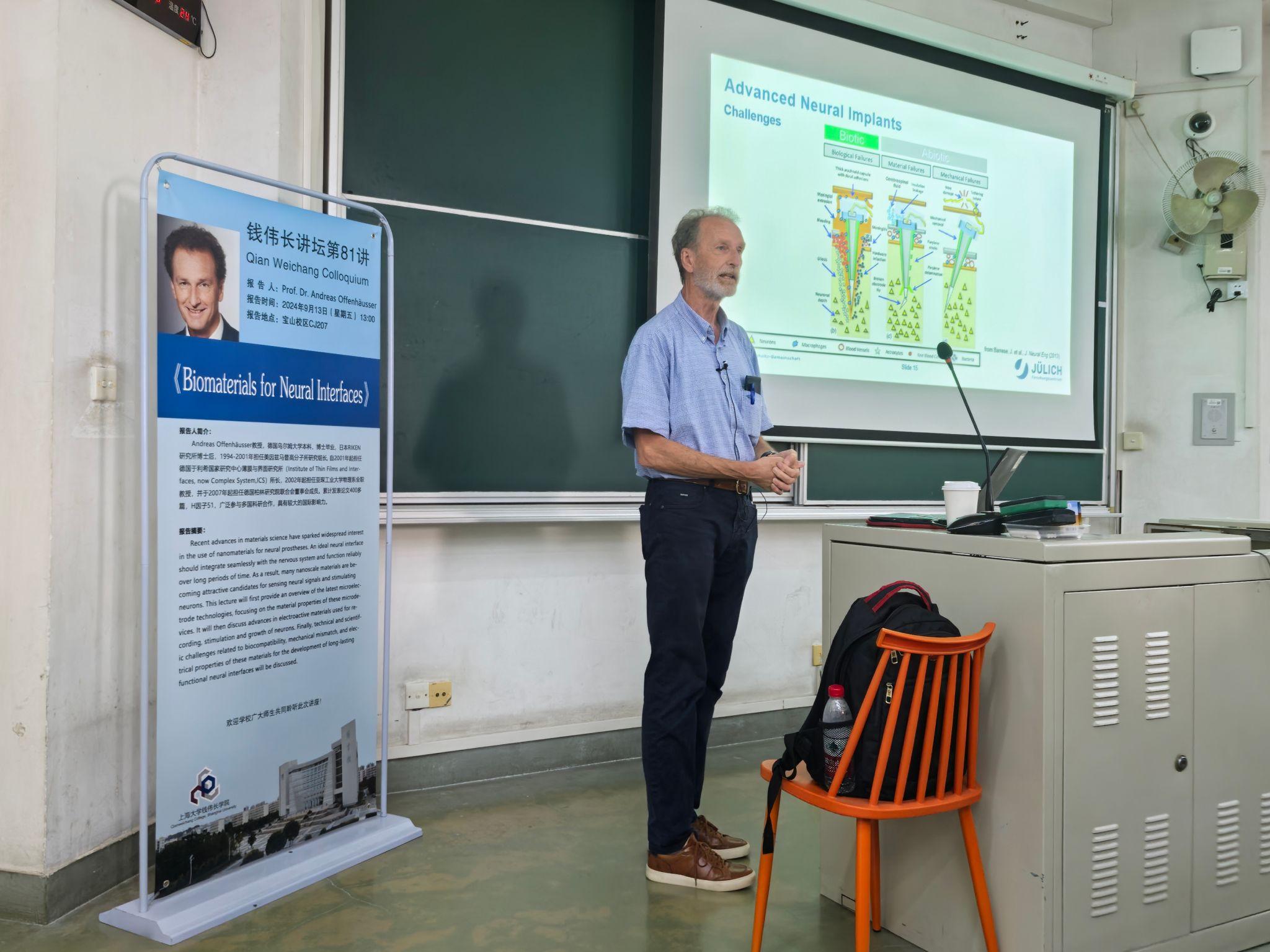 9月13日下午,钱伟长讲坛第81讲《Biomaterials for Neural Interfaces》在ac米兰官网中文网站宝山校区CJ207会议室顺利举行,德国亥姆霍兹联合会-于利希研究中心Andreas Offenhäusser教授应邀作主题报告,活动由钱伟长学院党委书记冯凌燕教授主持。