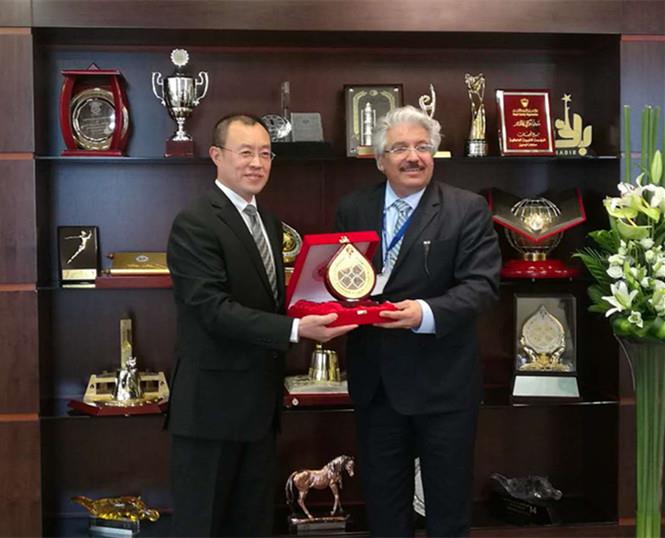 20日抵达当天,巴林大学校长瑞雅德教授专程接见了邹宗峰博士,并赠送了巴林大学校徽,对ac米兰官网中文网站的支持及巴林孔院所做的工作表示了感谢。随后,邹宗峰博士在孔子学院院长吴雪颖博士的陪同下参加校长瑞雅德教授亲自主持的招待宴会。