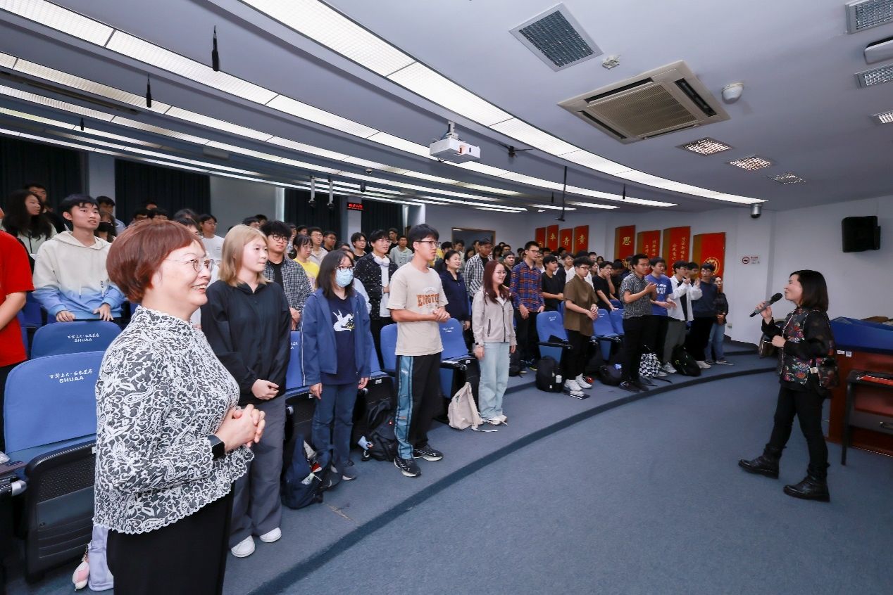最后,奚丽娜老师起调带动全班以优美激情的歌声唱起“我和我的祖国”,深情合唱将宣讲公开课的气氛推向了高潮。