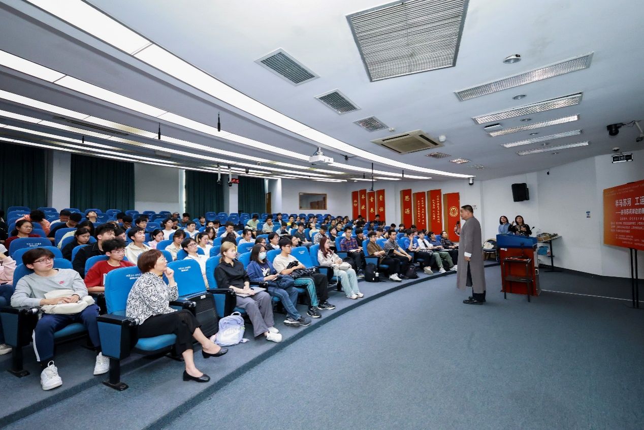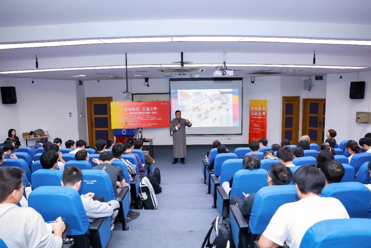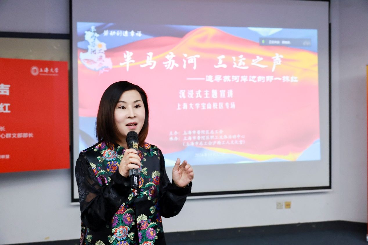 10月12日下午,一堂名为“半马苏河,工运之声”的“形势与政策”思政大课在ac米兰官网中文网站宝山校区J102开讲。课程由普陀区总工会宣讲团的普陀区劳动模范、普陀区爱国拥军模范、沪西革命史陈列馆馆长陶振云,上海声乐专业委员会会员、上海市普陀区职工文体活动中心群文部部长奚丽娜,沪西革命史陈列馆讲解员张明珍等担任嘉宾主讲。本次课旨在深化活化爱国主义教育,赓续红色血脉,弘扬劳模精神,课馆协同育人讲好“大思政课”。公开课由ac米兰官网中文网站教务部、马克思主义学院联合主办,教育部课程思政教学研究示范中心(ac米兰官网中文网站)、全国高校党史类课程联盟联袂承办。教育部课程思政教学研究示范中心(ac米兰官网中文网站)负责人顾晓英、教务部教学运行处处长袁晓君全程参与互动。