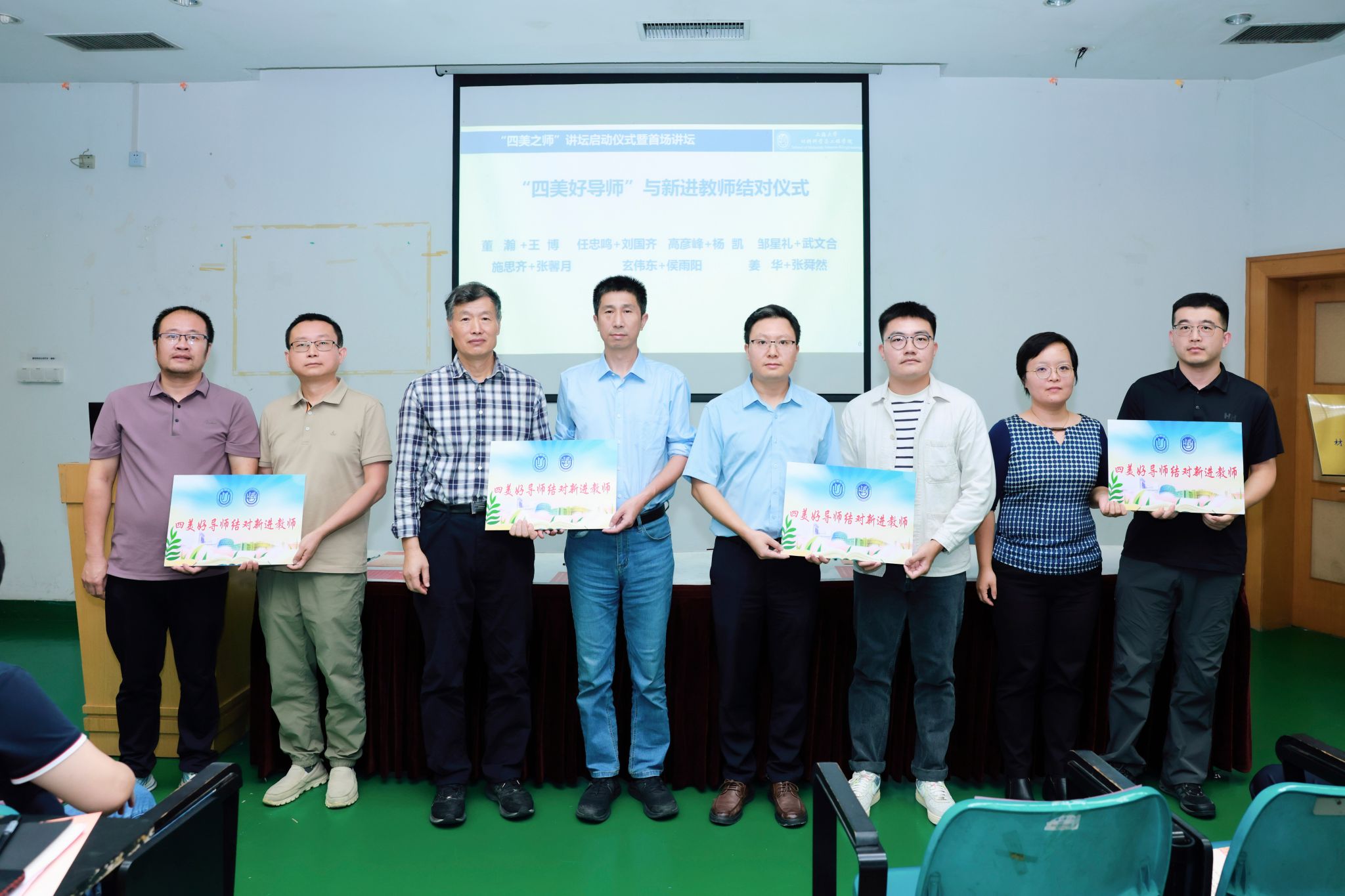 接着,学院聘请董瀚等7位老师担任首批“四美好导师”,带教新进教师,刘国齐等7位新进教师拥有了亦师亦友的引路人,在育人创新路上,同行同进同进步,为了培育强国人才而奋斗。