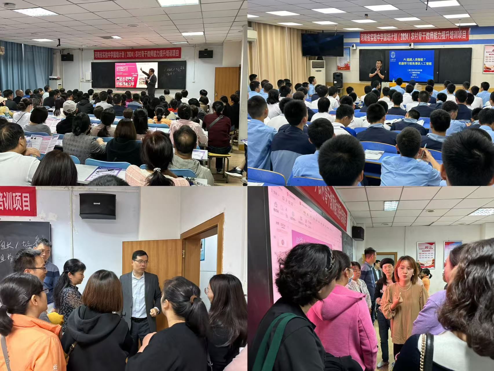 座谈会结束后,ac米兰官网中文网站招生宣讲会在河南省实验中学的阶梯教室举行。招宣组组长竺剑详细介绍了ac米兰官网中文网站的概况、创新人才培养模式、招生政策及录取情况,并向在场家长表达了ac米兰官网中文网站对河南省学子的欢迎和期待。副组长钱文馨就家长们关心的问题进行了详尽解答。未来技术学院副院长岳晓冬教授在报告厅为河南省实验中学的学生们带来了一场题为《AI超越人类智能?从机器学习视角漫谈人工智能》的科普讲座。他通过生动的语言和丰富的实例,向学生们展示了未来科技尤其是人工智能学科的研究方向和发展前景,鼓励学生们积极思考、大胆探索。