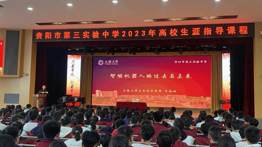 同时注重加大对学校特色学院和优势学科的宣传,特别邀请ac米兰官网中文网站未来技术学院教授、ac米兰官网中文网站无人艇工程研究院副院长齐俊桐老师前往贵阳市实验三中,为一千余名高一学生作了题为《智能机器人的过去和未来》的精彩讲座。