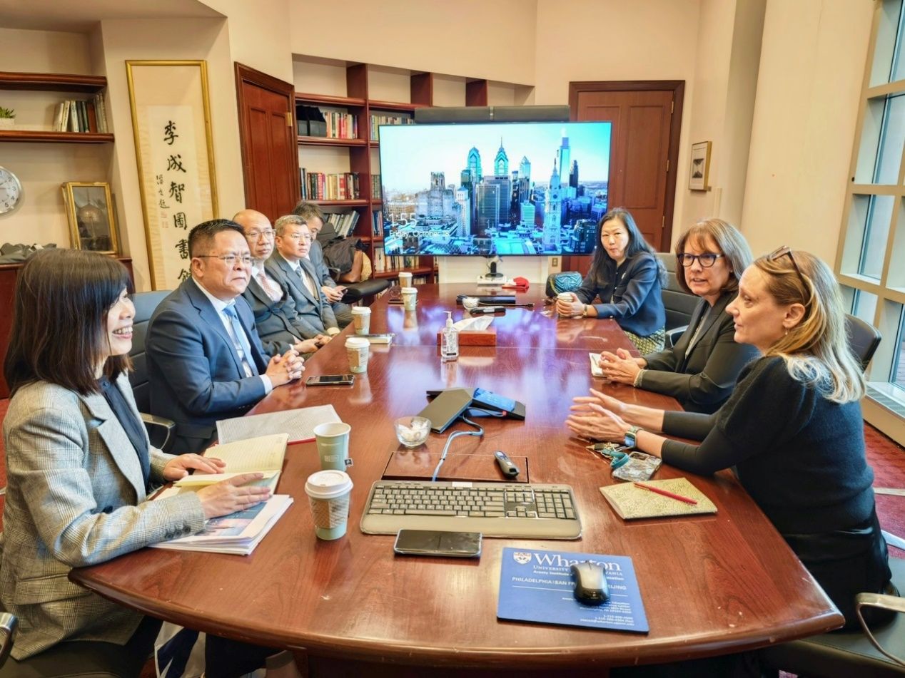 在费城,代表团访问了沃顿商学院。王从春副校长与沃顿商学院副院长Patti Williams 以及沃顿商学院高级教育总监MariePitone进行了会谈。王从春副校长希望两校在已有合作协议框架下进一步拓宽深度合作,促进师生交流。双方共同表达了全面深化战略合作的意愿和期许。代表团还走访了沃顿商学院行政教育培训中心,考察了数智化教学科研设施。