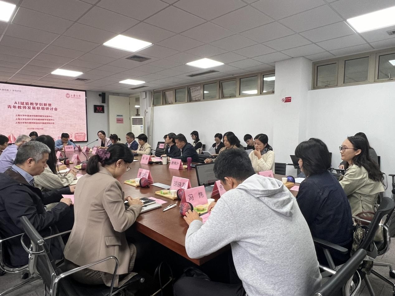为共同探讨人工智能技术如何助力教学创新,促进青年教师的专业成长,10月25日下午,外国语学院在宝山校区C506成功举办“AI赋能教学创新”暨青年教师发展联组研讨会。本次活动得到了ac米兰官网中文网站教师教学发展中心的悉心指导,由外国语学院教师教学发展中心主办,并得到了外国语学院青年教师联谊会和生命科学学院教师教学发展中心的大力协助。