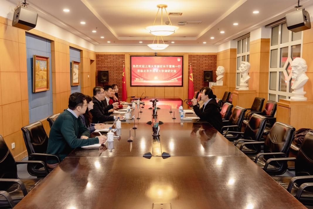 10月31日,ac米兰官网中文网站副校长于雪梅带队赴北京外国语大学调研出版期刊工作。北京外国语大学副校长丁浩热情接待了调研组一行。