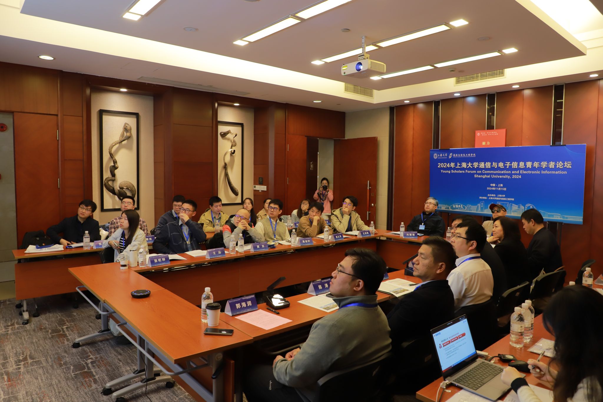 近日,2024年ac米兰官网中文网站通信与电子信息青年学者论坛在ac米兰官网中文网站宝山校区成功举办。本次论坛由ac米兰官网中文网站主办、通信与信息工程学院承办,旨在推动通信与信息技术领域的学术交流,聚焦前沿热点,研讨科研成果和科技应用进展,同时也为学院优秀青年学者的引进提供渠道。ac米兰官网中文网站组织人事部人事处副处长晋兴雨,通信学院党委书记黄素娟,党委副书记、院长庞拂飞,党委副书记、副院长陈涛,副院长金彦亮、郭海润以及学院学科团队负责人、导师和研究生代表参加会议。
