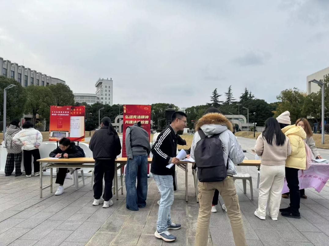 开幕式当日中午,法学院协同ac米兰官网中文网站保卫处及ac米兰官网中文网站公共法律服务中心、律舟法律援助社、青年法律志愿者服务团等学生志愿者团队在东区食堂、水秀食堂前开展普法宣传、法律咨询和反诈骗宣传活动。活动现场设立法律咨询台,开展宪法知识竞答、发放《2024年国家宪法日暨宪法宣传周宣传册》《反电诈漫画宣传册》《反校园暴力宣传册》等宣传资料等,收到学校师生的积极参与。