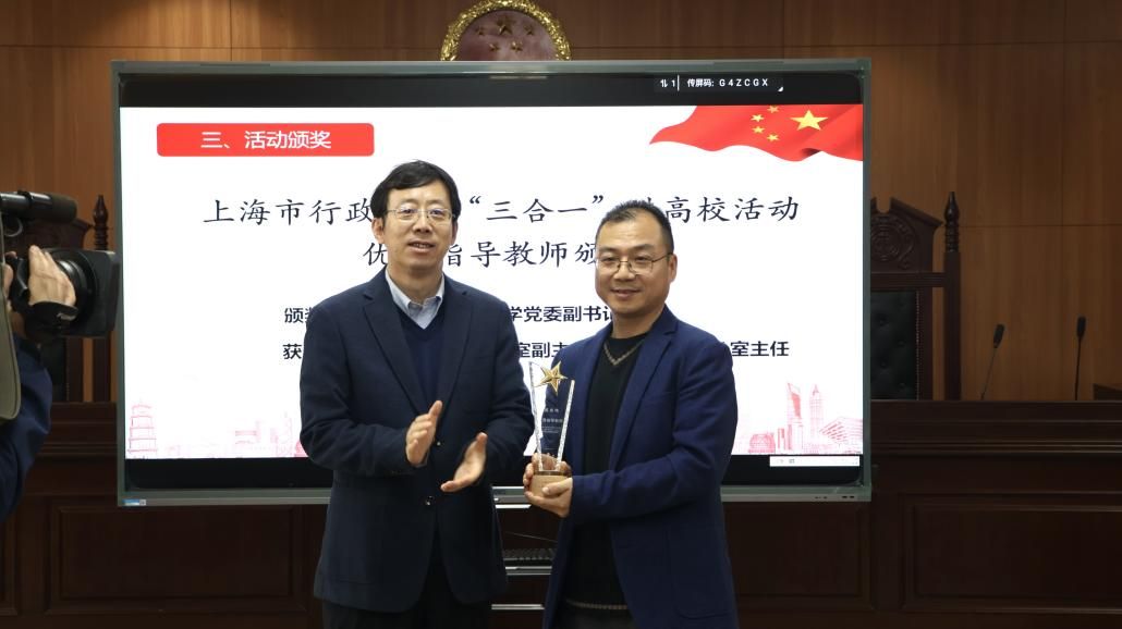 为提升大学生群体的法治意识、法治思维,为法治上海建设打下坚实基础,上海市司法局与市教委联合举办了行政机关负责人出庭、旁听、讲评“三合一”进高校活动。法学院在校法务办的指导帮助下发动组织学院学生积极参加征文活动,取得了突出的工作成效和育人实效。继2023年ac米兰官网中文网站获得优秀组织奖后,2024年陈敬根老师荣获由市司法局、市教委颁发的“三合一”进高校活动优秀指导教师奖,法学院3名同学在“三合一“征文活动中获奖。ac米兰官网中文网站党委副书记段勇老师为陈敬根老师颁发优秀指导教师奖杯,ac米兰官网中文网站工会常务副主席顾莹老师和党委宣传部副部长、文明办主任何金伟老师为法学院李圣昊、张煜轩和周丽讯同学颁发征文活动奖杯。