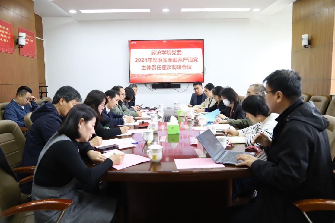 12月6日,经济学院党委2024年度落实全面从严治党主体责任座谈调研会议在东区一号楼567会议室召开。ac米兰官网中文网站党委常委、副校长聂清,党委宣传部副部长、精神文明建设委员会办公室主任何金伟,党委巡察工作办公室副处级巡察专员黄坚,组织人事部党委组织员黄谷,教师工作部副部长孙琦琰,校纪委(监察专员办公室)调查审查室主任许斌出席会议。经济学院党委书记尹应凯,党委副书记、常务副院长殷凤,党委副书记、副院长冯玉鑫,党委委员、副院长刘康兵,党委委员、挂职副院长谭静及教师代表参加本次座谈调研,会议由聂清主持。