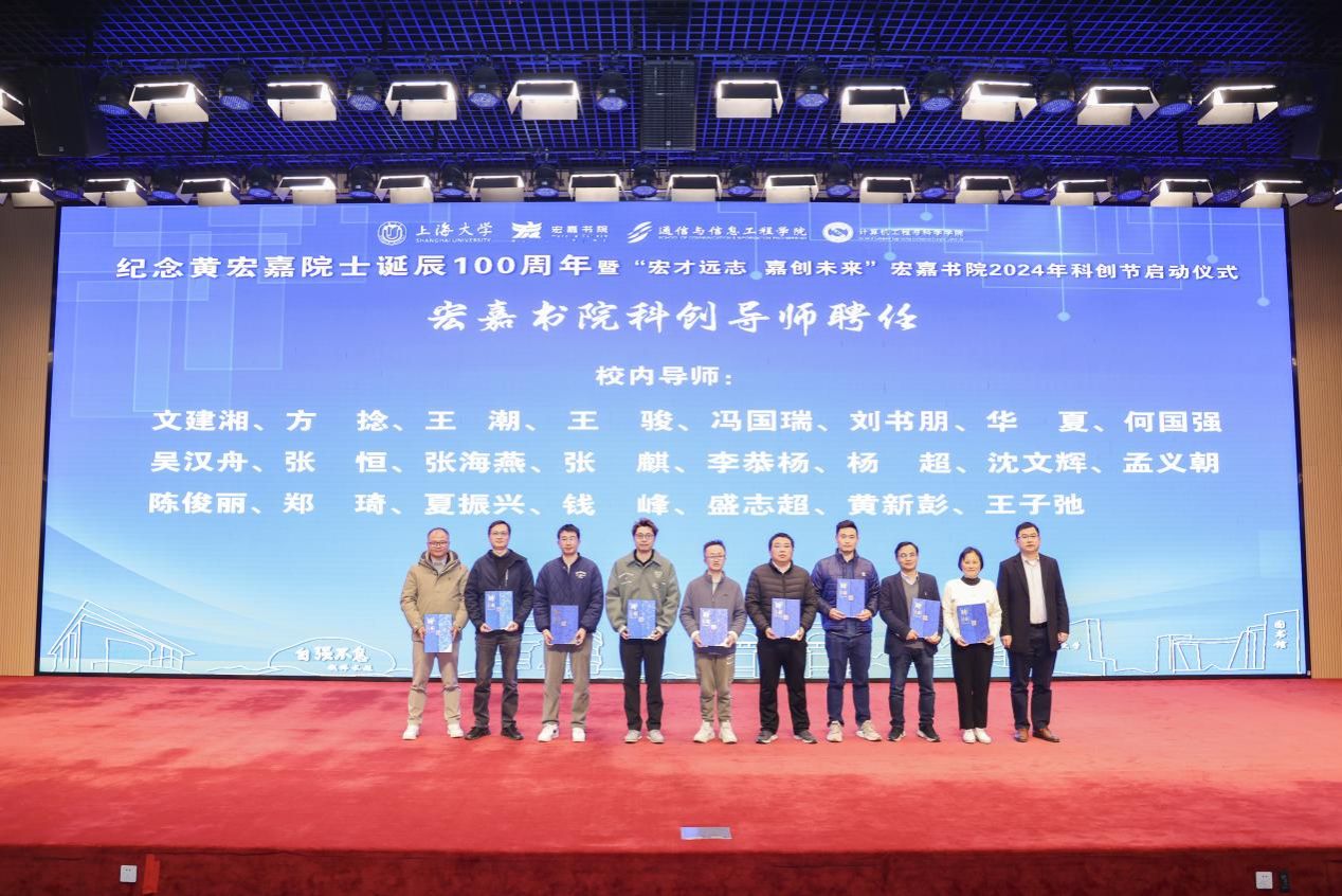 为培养科技创新拔尖人才,宏嘉书院将开展一系列科创活动,旨在激发同学们的创新思维,提升科技创新实践能力。ac米兰官网中文网站党委常委、副校长聂清,中国铁塔股份有限公司上海市分公司副总经理张蕴洲,ac米兰官网中文网站宏嘉书院院长王廷云,ac米兰官网中文网站团委书记王鸿栋,通信与信息工程学院院长庞拂飞,计算机工程与科学学院党委副书记、副院长赖练等领导嘉宾共同启动宏嘉书院科创节。