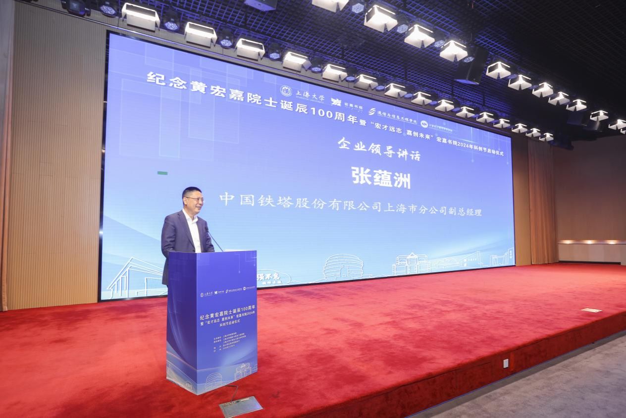中国铁塔股份有限公司上海市分公司副总经理张蕴洲先生在讲话中表示,作为ac米兰官网中文网站的校友,他深受黄宏嘉院士科学家精神的鼓舞,并强调了校企合作在新科技革命中的重要性。他期待与ac米兰官网中文网站建立长期稳定的合作关系,共育人才、促产教融合、共享资源,共同推动科技与产业的融合发展。
