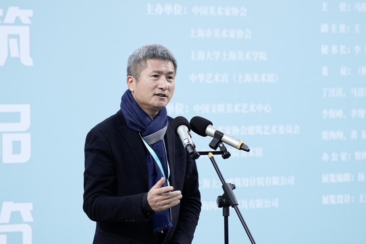 上海美术学院院长、上海市美术家协会主席曾成钢在致辞中表示,建筑是可用的雕塑,她与雕塑、绘画如同兄弟姊妹般紧密相连。他认为在建筑行业现处低迷、存量大的形势下,反而是发挥艺术才智、推动城市更新的机遇,中国智慧有望借此大放异彩。他期待以上海美院为基地,集众人智慧于上海,抓住国家给予上海的时代机遇,呼吁大家常来甚至扎根上海,将上海建筑打造成世界标杆,让上海成为世界客厅。他呼吁新一代青年肩负使命,能让中国在文化、建筑等专业领域走向世界前列,超越过往、展望未来