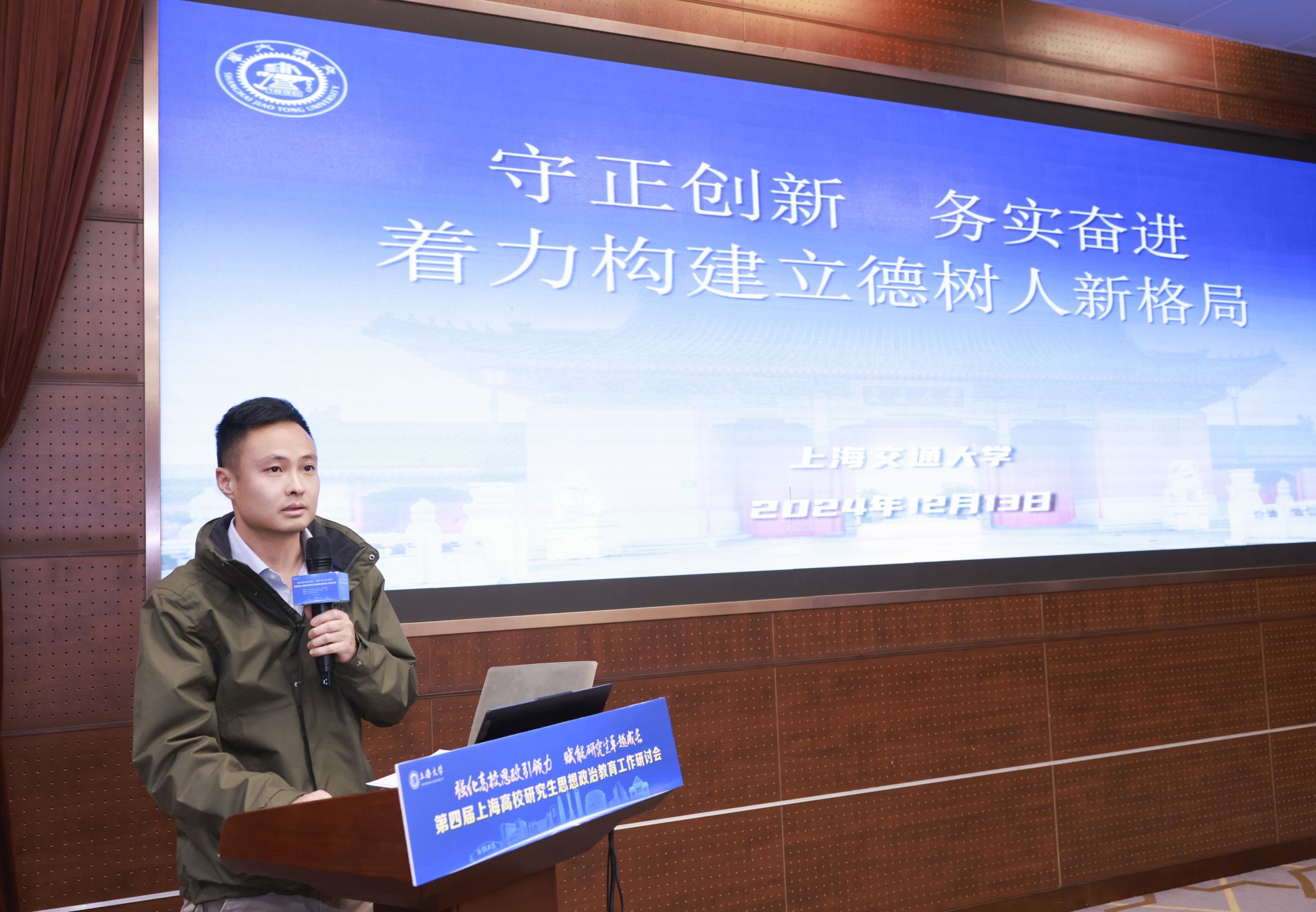 上海交通大学学生处副处长范翔在主题分享《守正创新,务实奋进,着力构建立德树人新格局》中,介绍了学校在研究生思想政治教育方面的创新实践。他指出,通过“北辰计划”、“阳光计划”和“舵手计划”等特色项目,学校精准对接研究生需求,推动理论与实践融合。通过一站式学生社区建设,全方位提升学生综合素质。