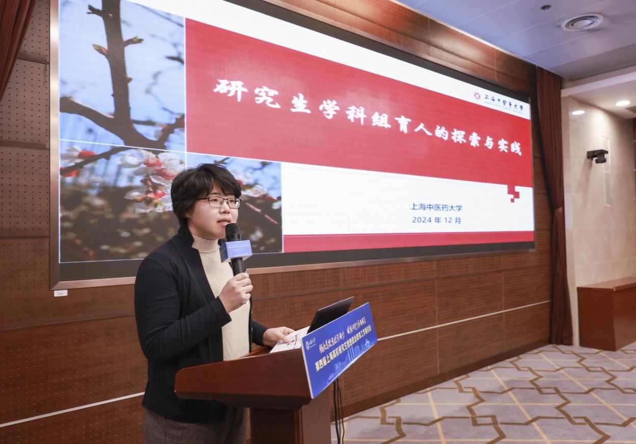 上海中医药大学学(研)工部部长沈漫在《研究生学科组育人的探索与实践》主旨演讲中,分享了学校在研究生思想政治教育方面的思考与实践。她指出学校结合全国教育大会精神,提出了关于思政引领力、人才竞争力和学科支撑力的重要观点,并着重介绍了“学科组”这一组织单元开展专项育人工作的生动实践。