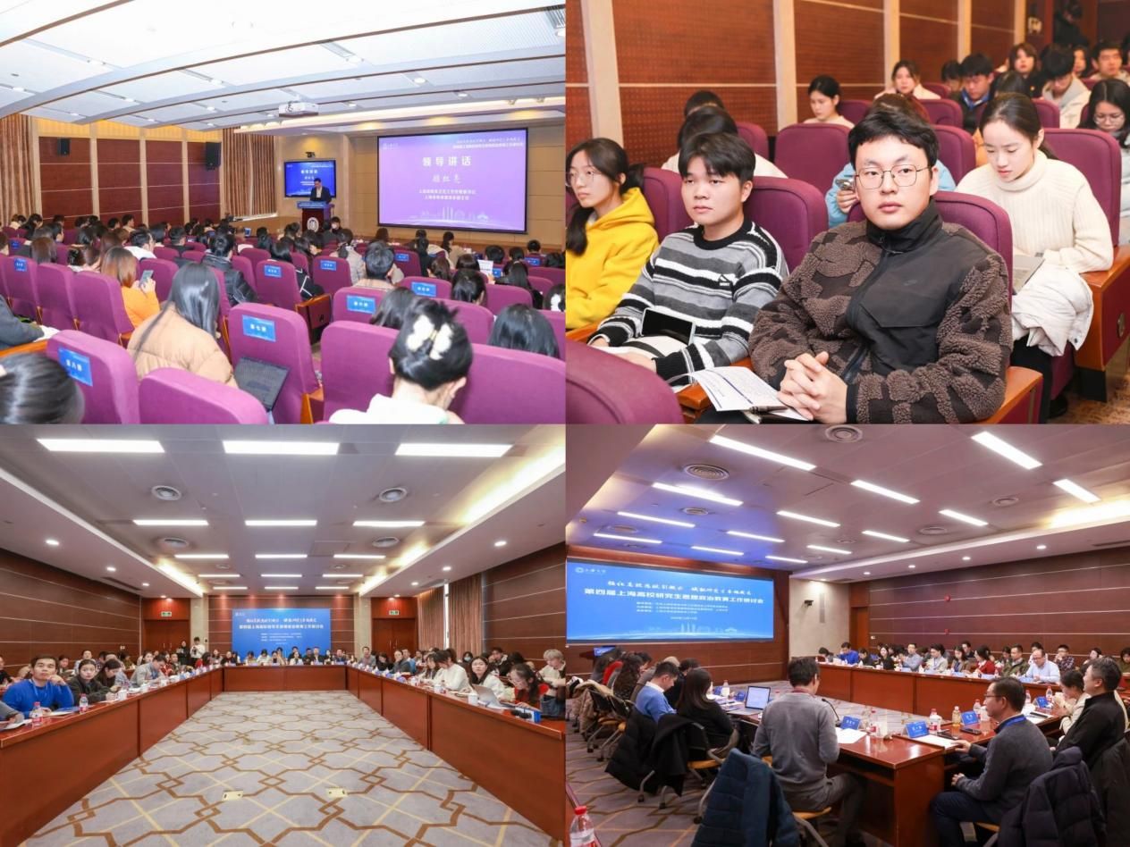 为深入学习贯彻习近平新时代中国特色社会主义思想,深入学习党的二十届三中全会、全国教育大会精神,贯彻落实学校教育大会精神,推动学校研究生思政教育工作高质量发展,以“强化高校思政引领力 赋能研究生卓越成长”为主题的第四届上海高校研究生思想政治教育工作研讨会于12月13日在ac米兰官网中文网站宝山校区乐乎新楼顺利举行。本届研讨会由中共上海市教育卫生工作委员会、上海市教育委员会指导,上海市教育科学研究院德育发展研究院、ac米兰官网中文网站主办,ac米兰官网中文网站党委研究生工作部承办,共设置三场主旨报告和一场研究生党支部书记论坛。