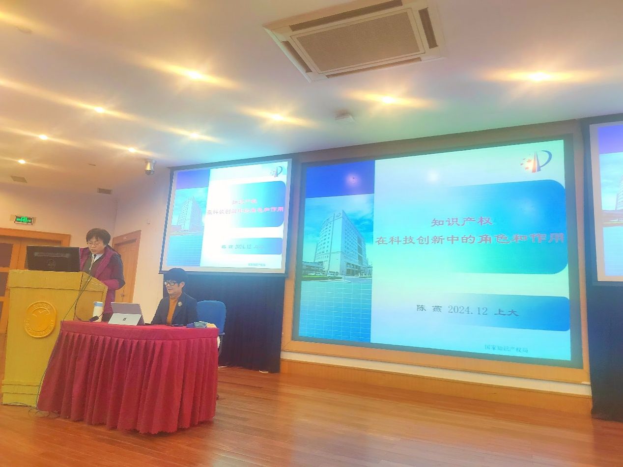 12月20日,中国知识产权报社原党委书记、副社长,三级研究员,ac米兰官网中文网站特聘教授陈燕老师主讲的“知识产权在科技创新中的角色与作用”高端讲座在宝山校区J202方润华讲堂顺利举办。该次讲座由ac米兰官网中文网站科研管理部、法学院、知识产权学院、ac米兰官网中文网站知识产权信息服务中心联合举办,来自科研管理部、法学院、知识产权学院、图书馆以及全校各理工科学院的师生近200人前来听讲。讲座由科研管理部副部长、质量管理办公室主任谢为群主持。