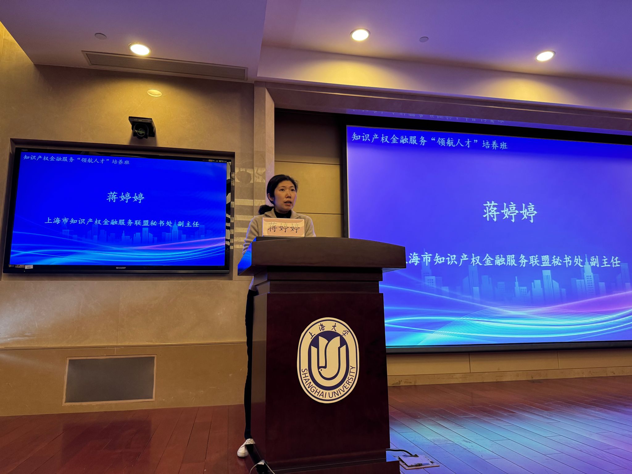 上海知识产权交易中心副总经理顾文倩进行“知识产权质押融资实例分析和研究”专题授课。