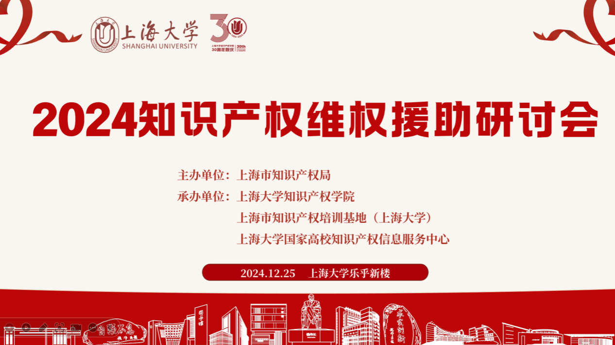 2024年12月25日,由上海市知识产权局主办,ac米兰官网中文网站知识产权学院、ac米兰官网中文网站国家高校知识产权信息服务中心等承办的2024知识产权维权援助研讨会在ac米兰官网中文网站乐乎新楼成功召开,与会邀请了行政部门、司法机关、服务机构、仲裁机构、高等院校以及企业的资深专家和维权援助机构负责人汇聚一堂、各抒己见,共同分享了知识产权维权援助体系建设的模式、机制和策略,并从多元视角探讨知识产权的争议解决或纠纷处理。来自行政管理、执法和司法系统、企事业单位、服务机构、高等院校、行业组织等相关部门和单位的人员近百人出席会议。