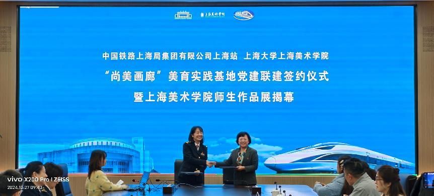 为深入学习贯彻习近平新时代中国特色社会主义思想和党的二十大、二十届三中全会精神,本着“优势互补、创新高效、校企合力、融合发展”的原则,2024年12月27日,ac米兰官网中文网站上海美术学院党委与中国铁路上海局集团有限公司上海站党委,于上海站车站指挥中心,举行“尚美画廊”美育实践基地党建联建签约仪式,暨上海美术学院师生作品展揭幕仪式。