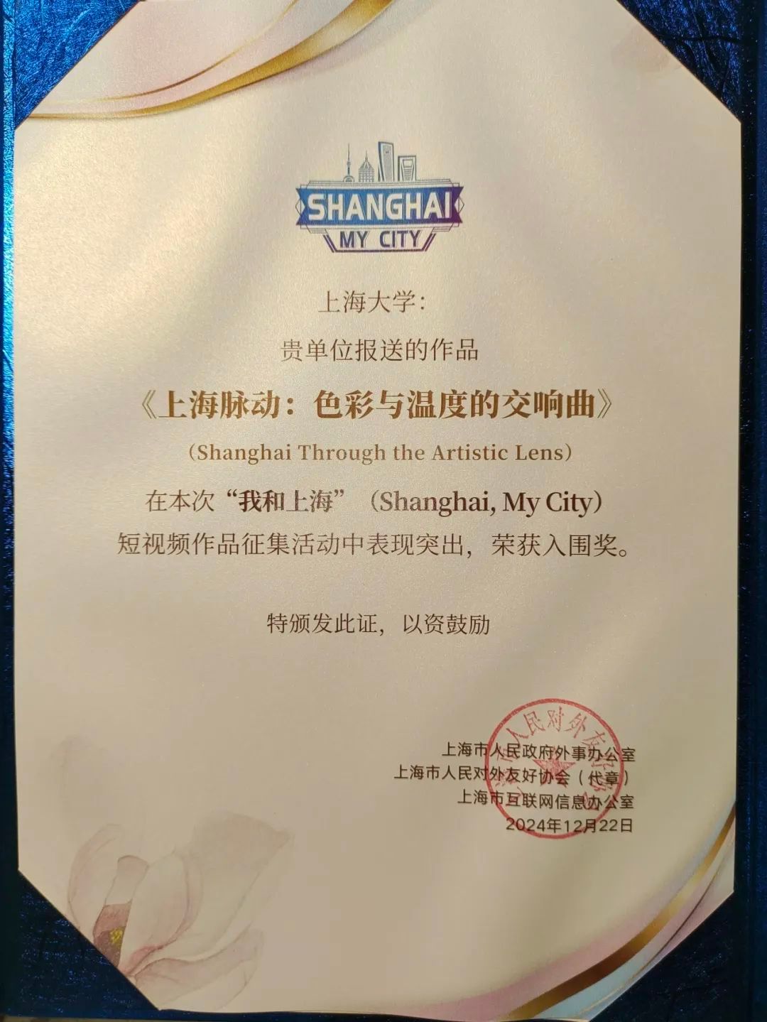活动征集期内共收到200余部作品,其中42部佳作入选网络展播环节。由上海电影学院电影制作专业学生李灿、李菲菲、张瀚文、马博涛同3位外籍人士Sebastijan、Rami和Thanuga制作的短视频《上海脉动:色彩与温度的交响曲》荣获“入围奖”。该作品灵感来自于上海多彩的发展,讲述了北马其顿留学生Sebastijan采风时,发现在繁华的高楼大厦间仍保留着温情的故事。同时,ac米兰官网中文网站荣获“优秀组织奖”。