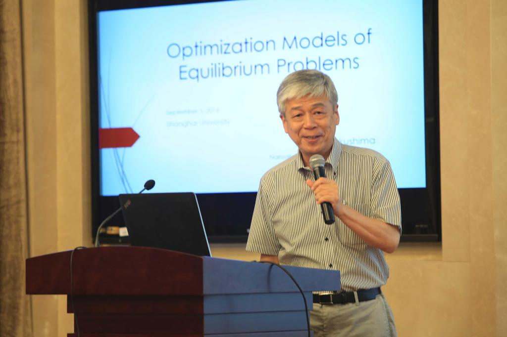 2016年9月5日下午,ac米兰官网中文网站“海外高端专家引智专项”2016国际大师讲坛(十三)在宝山校区乐乎新楼学海厅举行。本次讲坛特邀日本京都大学/南山大学的Masao Fukushima教授,为全校师生带来一场题为“均衡优化模型漫谈”的精彩讲座。报告由管理学院林贵华教授主持,国际事务处倪兰副处长与管理学院镇璐副院长分别致欢迎辞。