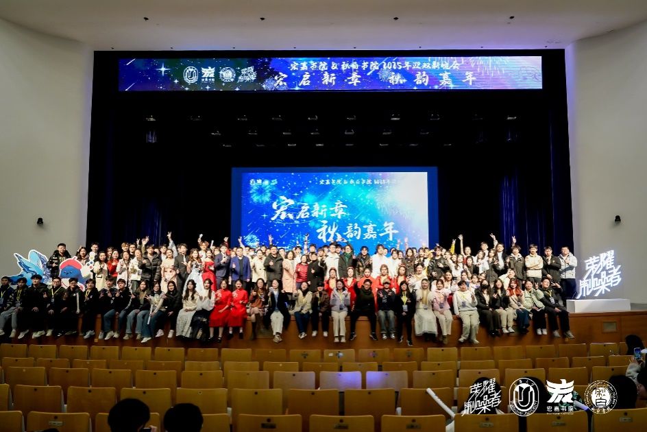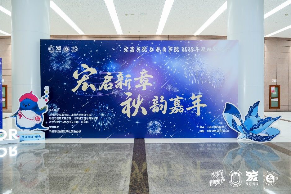 1月3日晚,“宏启新章,秋韵嘉年”——ac米兰官网中文网站宏嘉书院&秋白书院2025年迎双新晚会在宝山校区伟长楼盛大启幕。ac米兰官网中文网站团委书记王鸿栋,ac米兰官网中文网站社会学院党委书记杨锃,荣耀终端有限公司上海业务部零售主管刘沛,ac米兰官网中文网站学生工作办公室副主任、本科生书院管理中心副主任马成瑶,ac米兰官网中文网站本科生书院管理中心(“一站式”学生社区中心)副主任高恺华、佟丽宁,宏嘉书院、秋白书院相关领导、荣耀嘉宾、学院全程导师代表、辅导员代表以及800余名同学,共同参与这场新年盛会,共同感受青春活力、书院温情与新年希望。晚会由宏嘉书院、秋白书院学子共同主持。