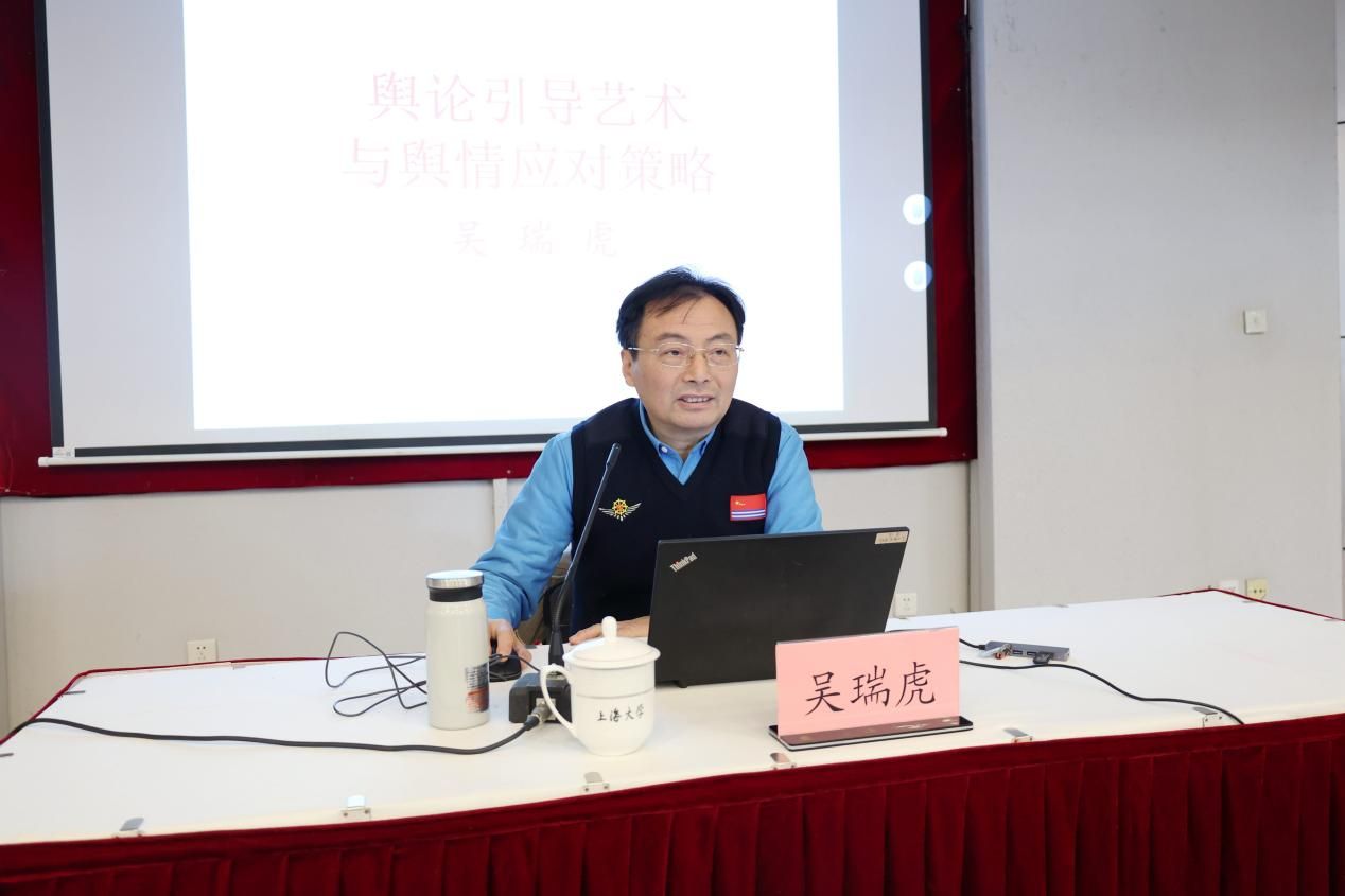 中共上海市委党史研究室特约研究员、陈云纪念馆原党委书记、馆长、中共上海市委宣传部原二级巡视员吴瑞虎应邀作《舆论引导艺术与舆情应对策略》专题辅导报告。吴瑞虎结合当前社会舆论热点,通过具体案例,论述了新时代切实做好意识形态工作的紧迫性和重要性,对新形势下如何进行舆论引导和舆情应对进行了指导。