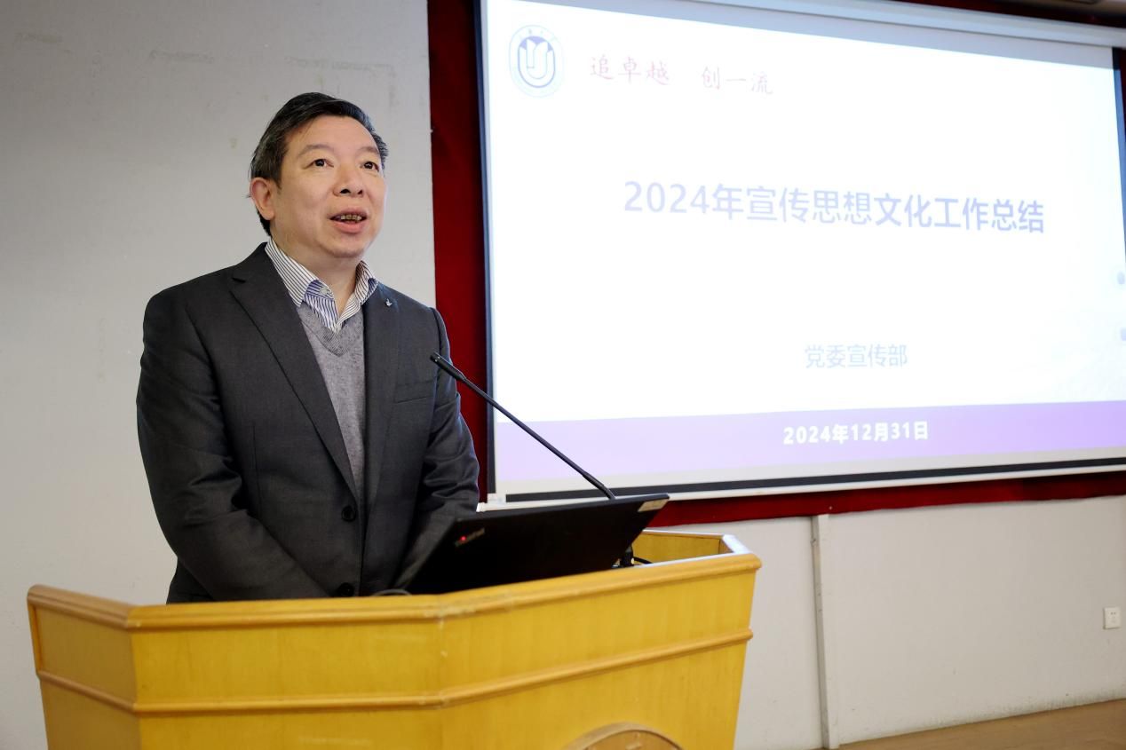 校党委常委、党委宣传部部长曾军从高举思想旗帜、落实工作责任、壮大主流舆论、弘扬社会主义核心价值观4个方面对ac米兰官网中文网站2024年宣传思想文化工作进行回顾和总结。
