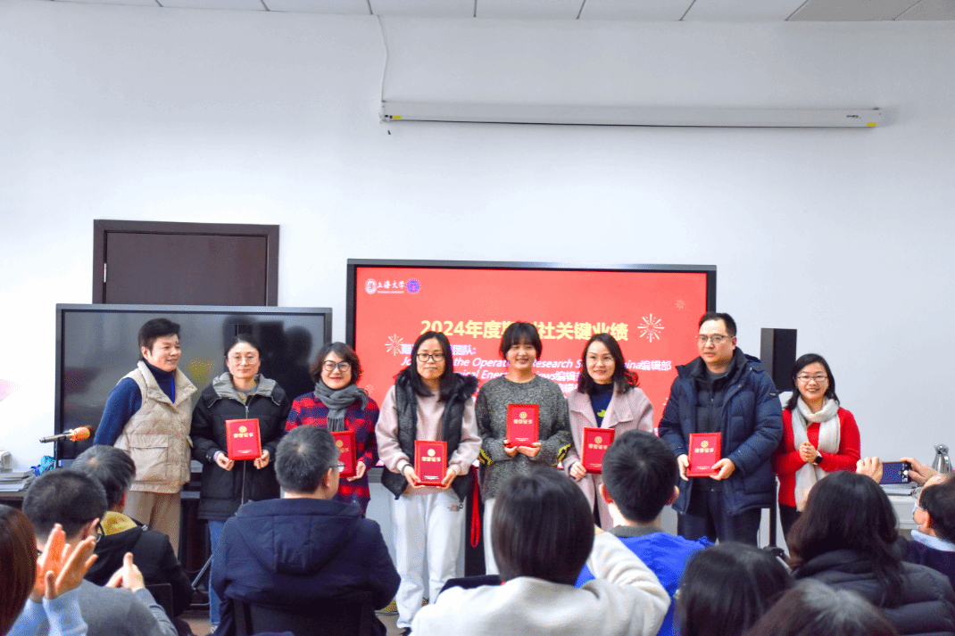 在颁奖环节,大会对在2024年度表现突出的团队和个人进行了表彰。其中,Applied Mathematics and Mechanics(English Edition)编辑部、Communications on Applied Mathematics and Computation编辑部、《运筹学学报(中英文)》编辑部、《ac米兰官网中文网站学报(社会科学版)》编辑部、《社会》编辑部以及期刊屋荣获“期刊社卓越团队”称号;Journal of the Operations Research Society China编辑部、Electrochemical Energy Reviews编辑部、《ac米兰官网中文网站学报(自然科学版)》编辑部、Chinese Journal of Sociology编辑部以及综合办公室荣获“期刊社优秀团队”称号。