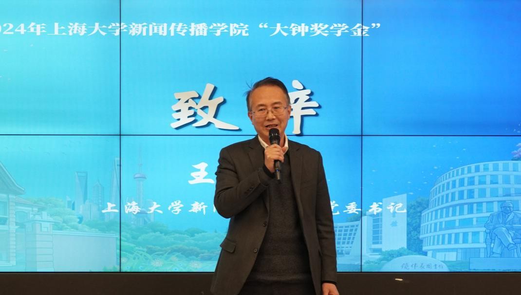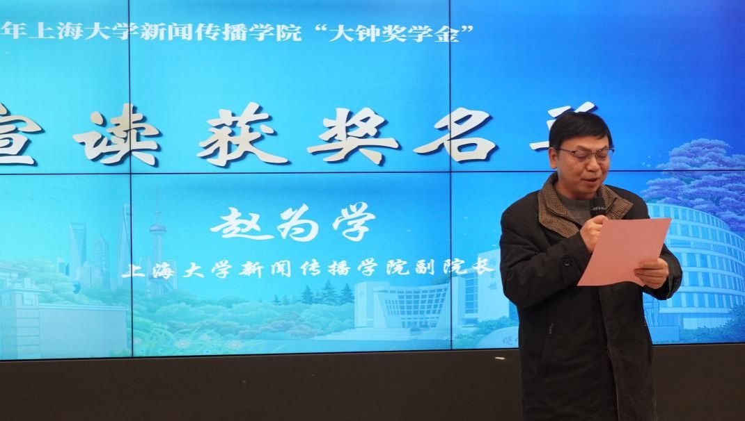 新岁肇始,欣欣向荣。近日,ac米兰官网中文网站新闻传播学院2024年度“大钟奖学金”颁奖典礼在延长校区新闻传播学院104报告厅举行。ac米兰官网中文网站校董张大钟,ac米兰官网中文网站对外联络处副处长彭明霞,新闻传播学院党委书记王晴川,党委副书记、副院长王智君,副院长赵为学,副院长周宇豪,智能视听学系主任虞国芳等领导、老师出席,学院学工团队教师及学生代表共同参加。