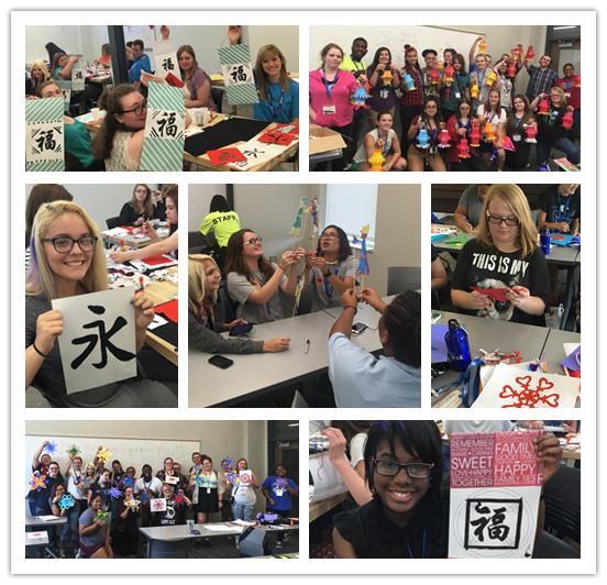 由于中国在世界上的影响力与日俱增,肯塔基大学把今年拓展夏令营的主题定为中国年,因此汉语作为唯一一门外语被纳入此次夏令营的课程之中,在总计有89名学生中,有39名选择了汉语与中国文化课程。学生都是美国本土学生,有小部分拉丁美裔、亚裔学生。他们都是各个高中选拔推荐的精英学生,素质高、接受能力强。通过3周的汉语学习与中国传统文化实践课程,学生们初步掌握了汉语拼音、汉语自我介绍、数字、颜色等基础词汇,了解了春节、元宵节、清明节、端午节、中秋节、重阳节等中国传统的节日;体验到了中国菜、包饺子、茶道、书法、剪纸、制作中国结等多种丰富而又有趣的中国传统文化活动。