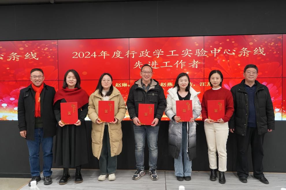 副院长牛盼强、周宇豪为2024年度行政学工实验中心条线先进工作者颁发了荣誉证书。