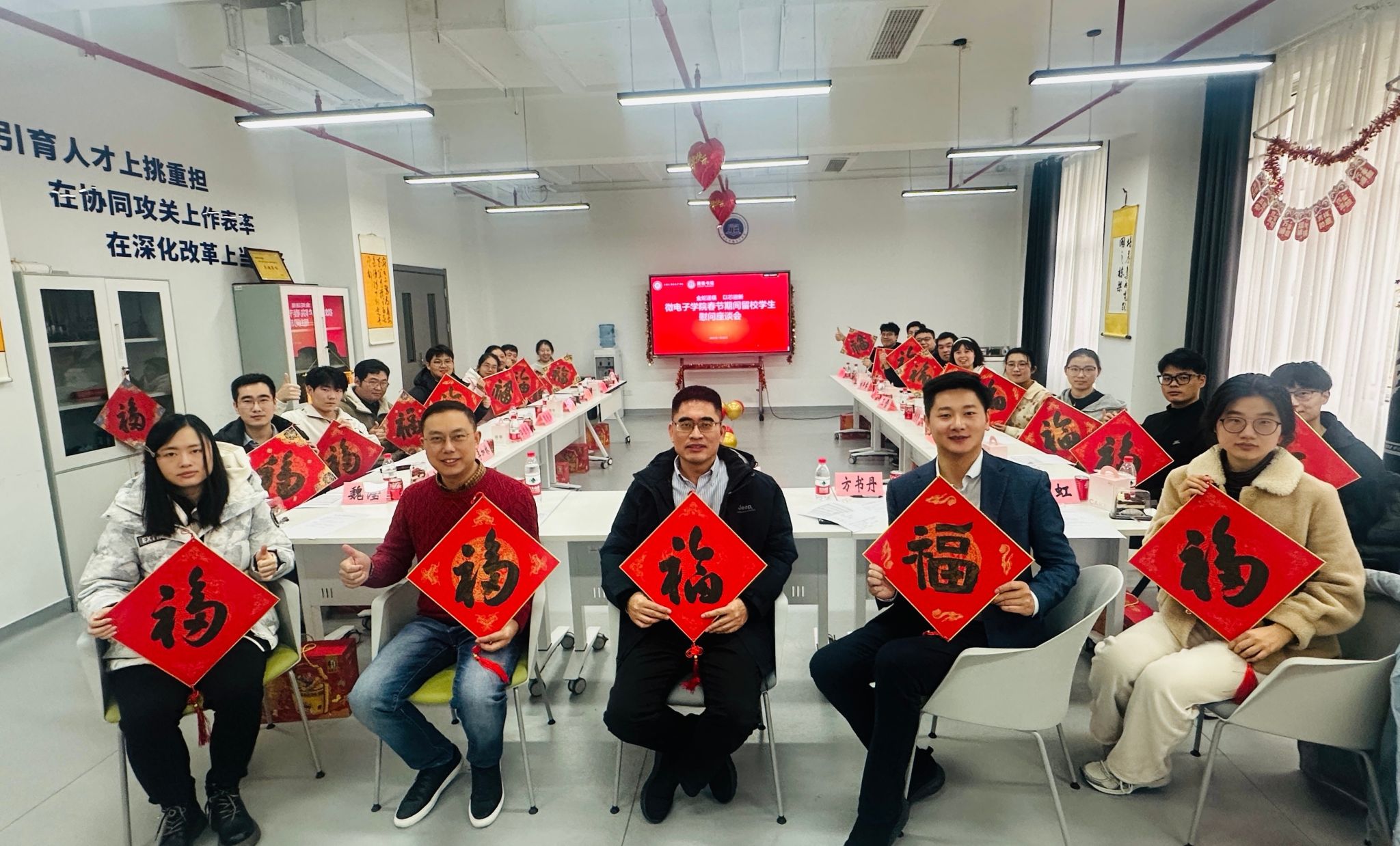 张建华老师详细了解留校学生的学习、科研、就业及生活状况,与留校学生亲切交谈,将散发着浓浓墨香的新春“福”字和慰问品送到留校学生手中,亲切的叮咛和满满的心意为同学们的寒假生活增添了一份喜悦与温暖。