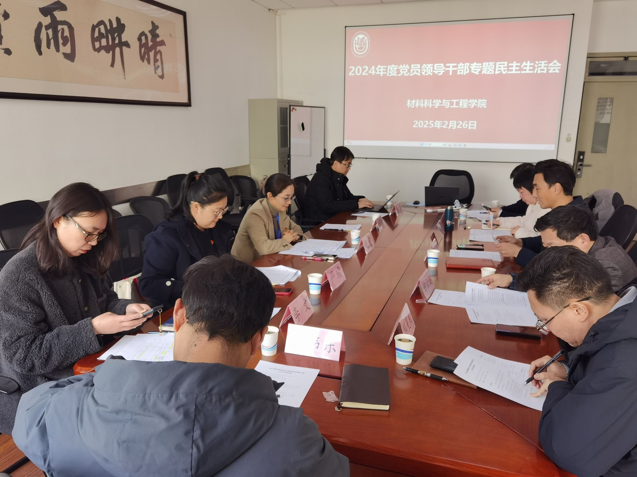 2025年2月26日下午,材料科学与工程学院党委召开2024年度党员领导干部民主生活会。校党委研究生工作部部长、2024年度二级党委党员领导干部民主生活会督导组组长魏宏,校党委组织员、督导组副组长尚彩伶,党校综合岗主管、督导组联络员严瑶到会指导,学院领导班子参加会议,会议由学院党委书记黄健主持。