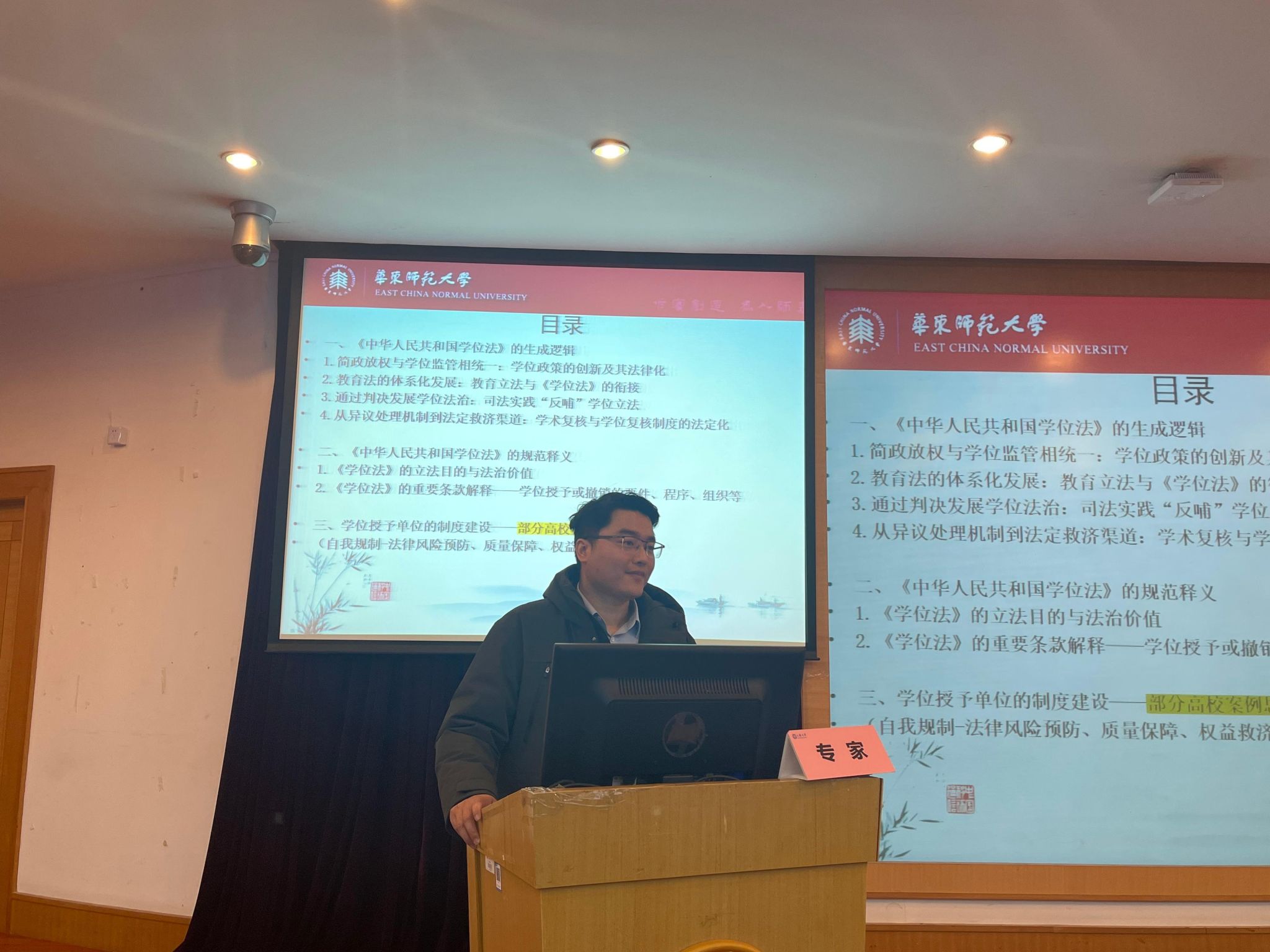 特邀嘉宾、华东师范大学高等教育研究所、教育立法研究基地的姚荣教授,带来了一场题为《<中华人民共和国学位法>的解释与适用》的精彩报告。姚荣教授凭借深厚的专业知识,从学位法的生成逻辑、立法目的与法治价值、重要条款阐释等多个维度,抽丝剥茧,助力在场老师透彻把握《中华人民共和国学位法》的整体架构。姚荣教授还援引一些国内各高校真实发生的具体且生动案例,着重对学术复核、学位复核等关键法律要点的内涵进行深度剖析,帮助老师们进一步全面、深入领悟《中华人民共和国学位法》的精髓要义。