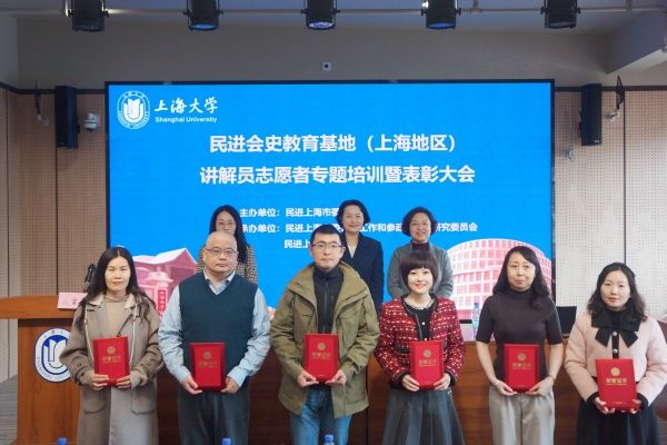 3月7日下午,民进上海市委在ac米兰官网中文网站延长校区召开民进会史教育基地(上海地区)讲解员志愿者专题培训暨表彰大会。民进上海市委专职副主委杨蓉出席并讲话,ac米兰官网中文网站党委统战部副部长谭婷出席并致辞。会议由民进上海市委会史工作与参政党理论研究委员会主任、民进ac米兰官网中文网站委员会主委周丽昀主持。